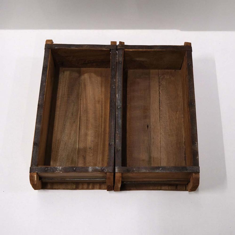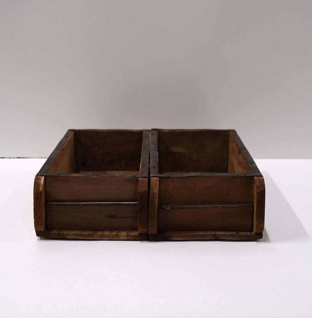 Double brick mould, where two moulds of reclaimed wood are put together. All the moulds are handmade and no two are alike. Use the brick mould as a rustic storage of your knick-knacks, in the kitchen for oils or spices or make a nice decoration in it. You can also hang the mould on the wall and use it as a shelf.