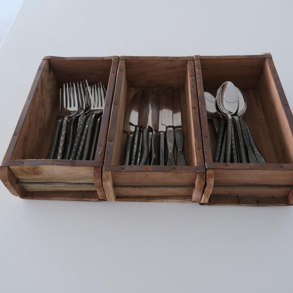 Here we have put together 3 brick moulds in reclaimed wood into one mould, which is perfect to use as a cutlery tray, for herbs and oils or something completely different. You can also choose to hang it on the wall as a shelf and exhibit your favorite knick-knacks in it. You can also mix several of the beautiful brick moulds and create a unique wall of small shelves.