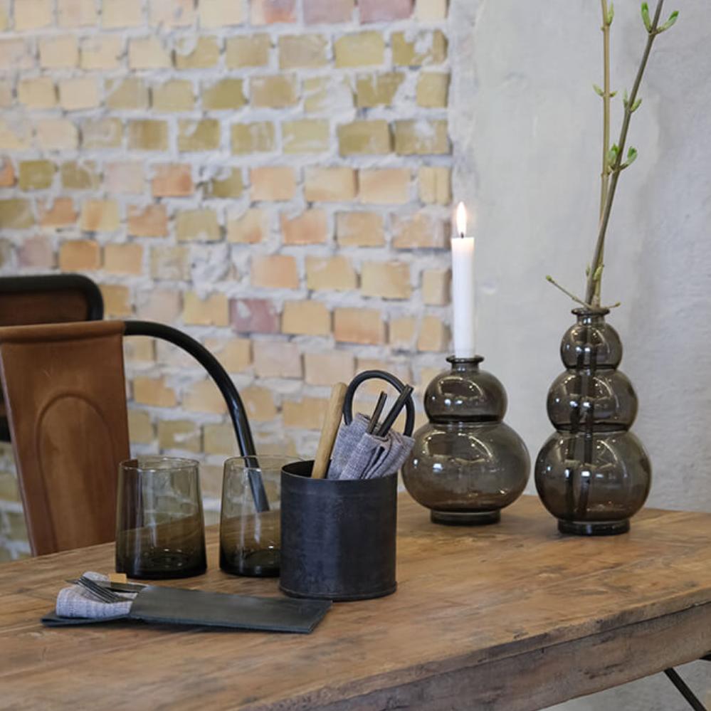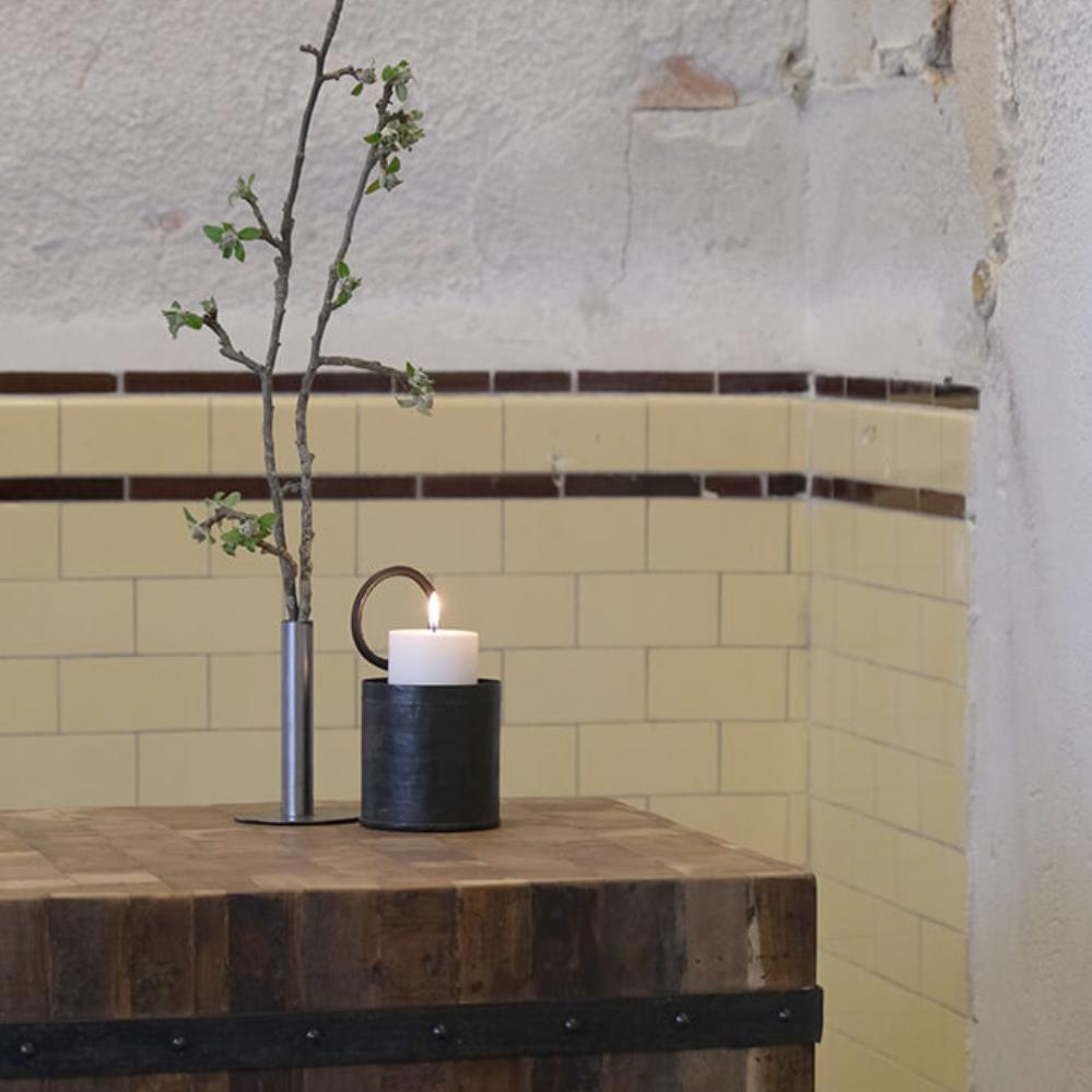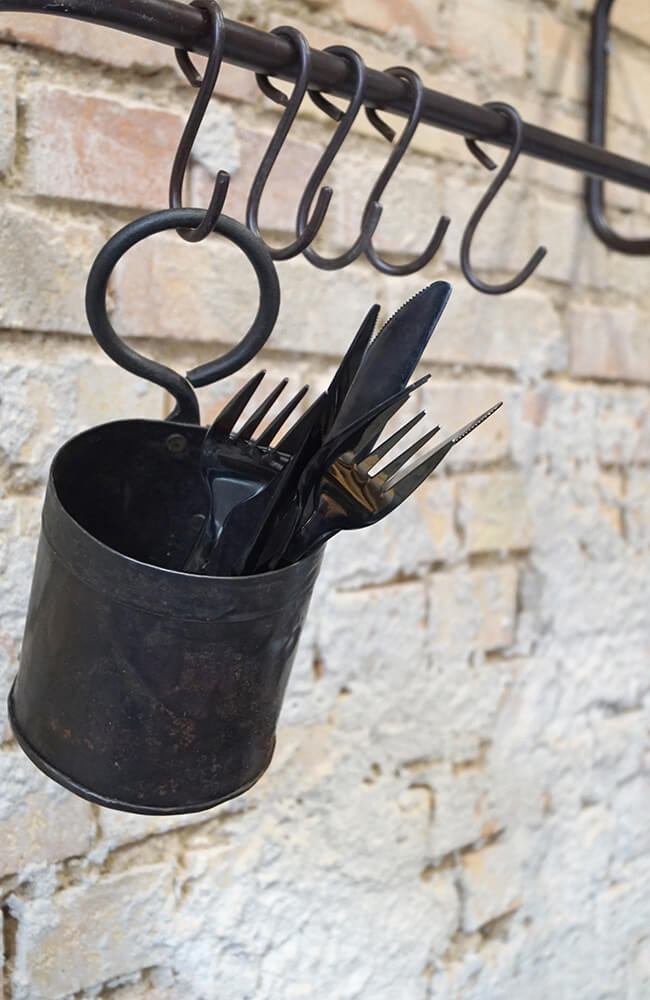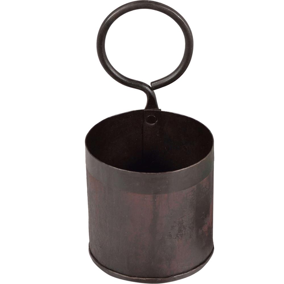 This rustic iron bucket features a simple and functional design with a raw look that fits perfectly into both minimalist and industrial interiors. The dark metal finish and round hanging ring give it a characterful and timeless expression. Use it as decorative storage for office supplies, cutlery, or to highlight green plants and herbs. Please note that the pot is not waterproof and should be lined with plastic or a small insert if used for plants requiring water. The stated height includes the handle, while the bucket itself measures 11 cm in height.