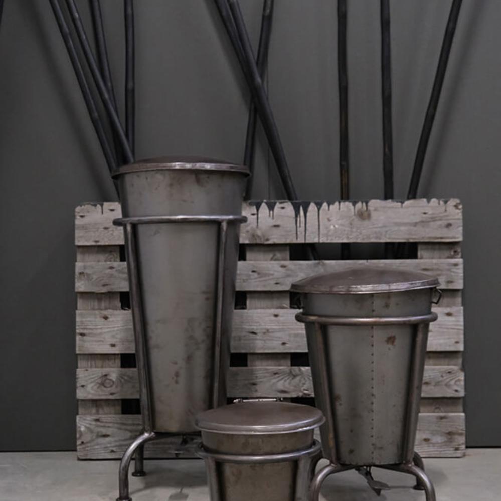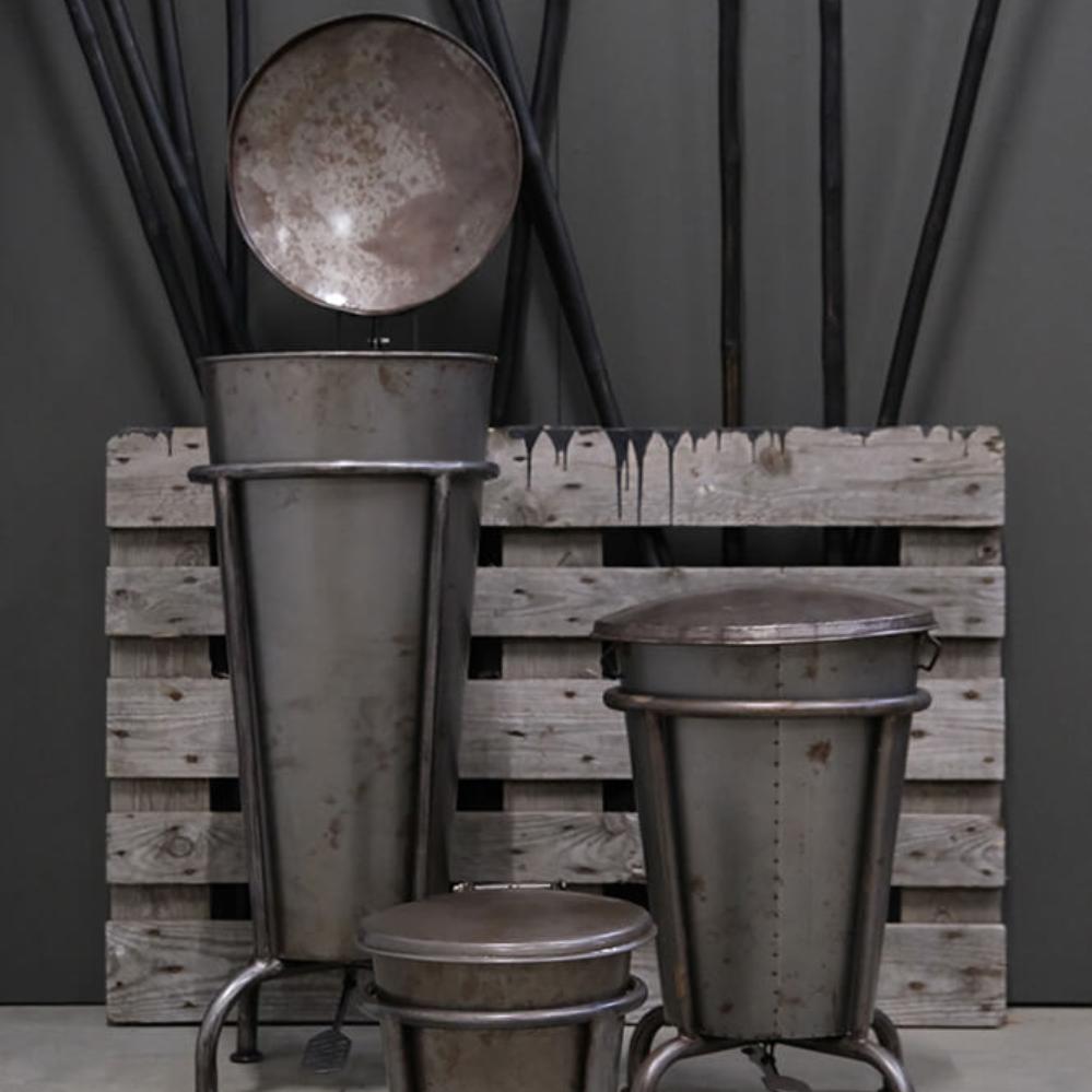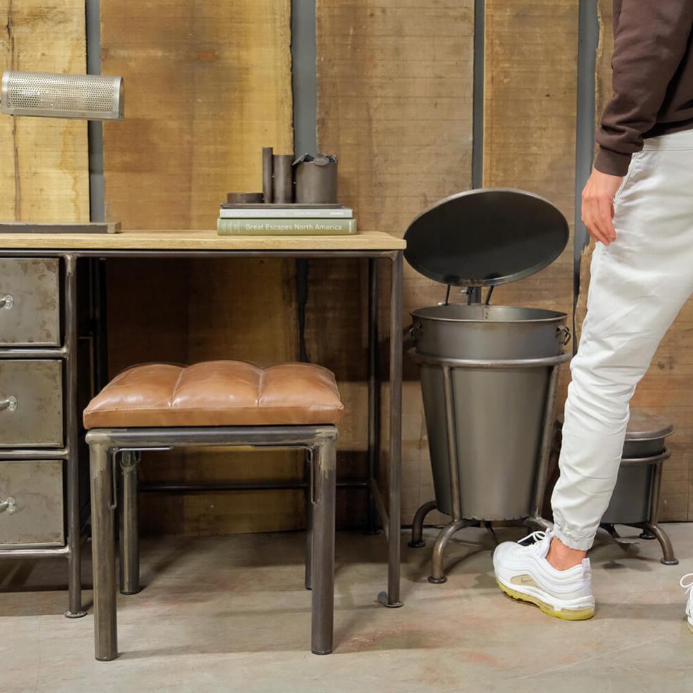 This large Klapp pedal bin in metal combines raw industrial design with practical functionality. Made from solid materials, it features a sturdy frame and a hinged lid that opens easily with a foot pedal. The durable construction makes it both strong and stable, while the matte metallic surface adds a cool, characterful look. Use it as a waste bin, storage solution, or even as a unique laundry basket, the possibilities are many. Its timeless design makes it suitable for homes, shops, and café interiors alike. Also available in a smaller version, search for Klapp in the webshop to see the full series.