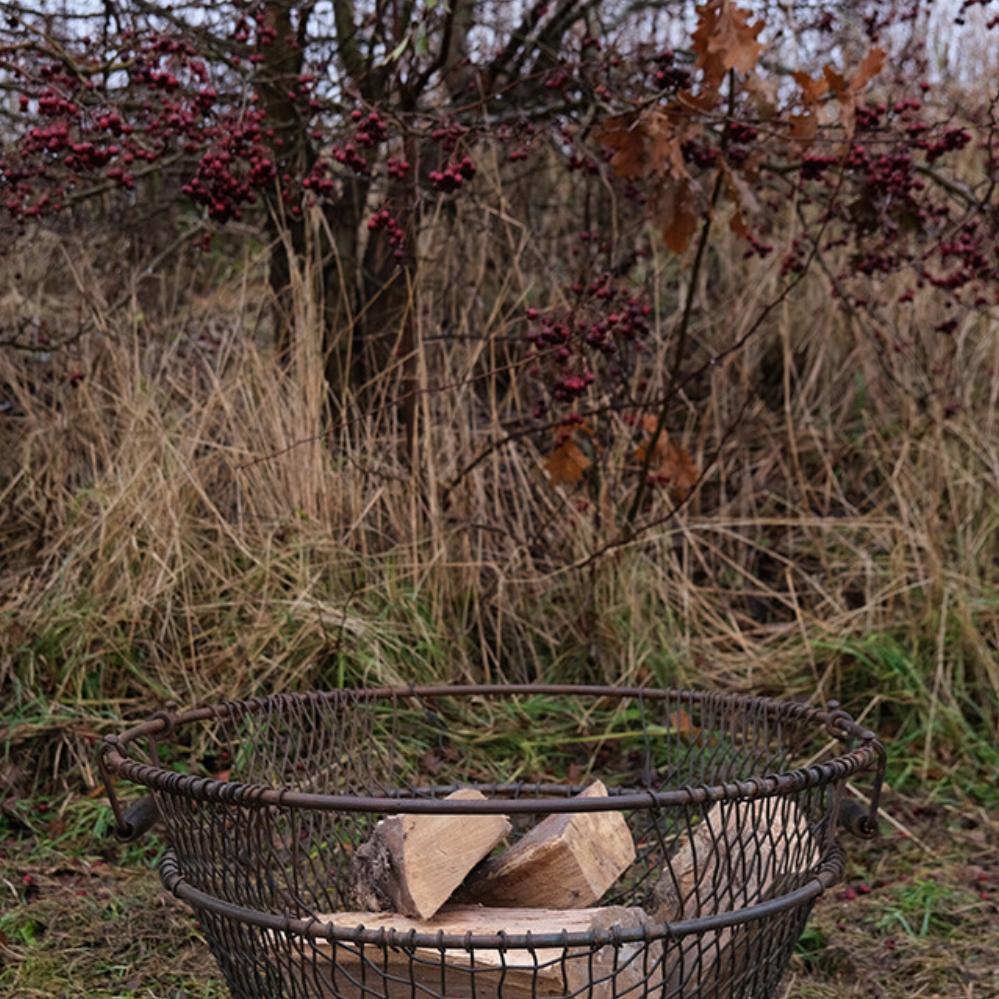 This large wire basket makes organizing a bit easier. It’s simple yet robust design is great for practical storage. The dark finish provides a sophisticated edge, while the open wire mesh not only looks good but also allows you to easily see what's inside the basket. The handles make it easy to transport the basket and its contents from room to room, and for example, the basket can be used to store your firewood next to the fireplace or wood stove.