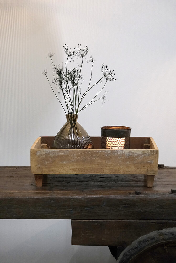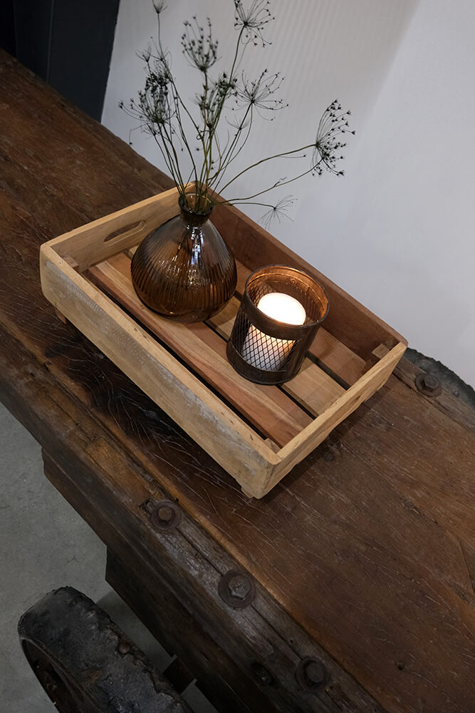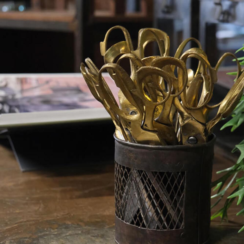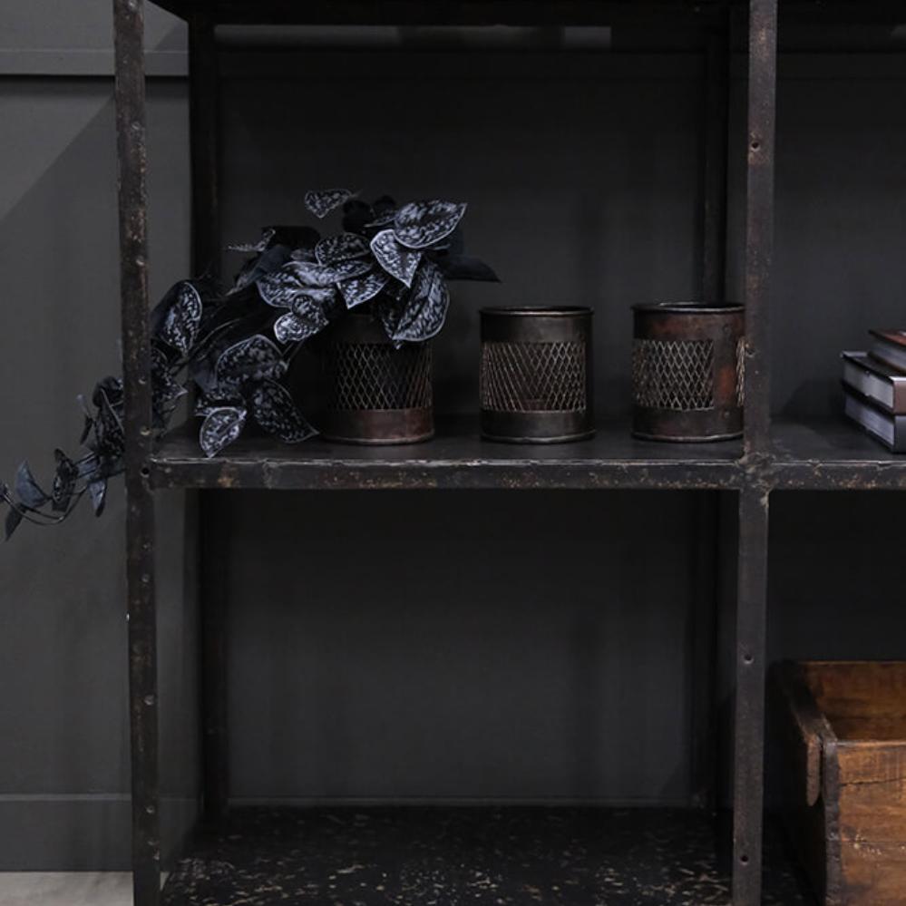 With its dark finish, this iron container exudes raw and industrial style. The container can be used for everything from office supplies to cutlery, and the the rustic metal mesh design strongly emphasizes the container's industrial expression.