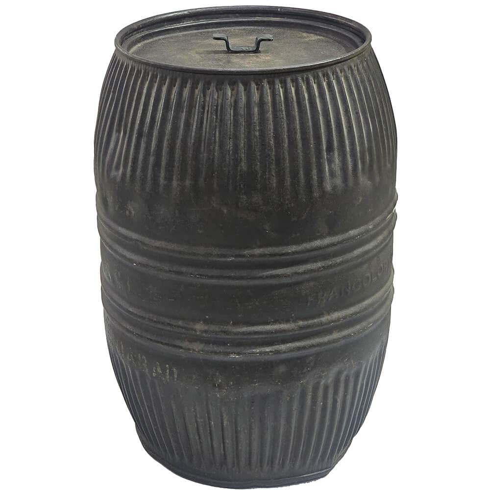 This old iron barrel in a dusty grey tone has a raw and unpolished look that immediately sparks curiosity. The ribbed sides and the included lid with handle add both details and function, while the subtle patina reveals a long life full of history in the metal. Use it as decorative storage, a plant holder, or an alternative side table with character. It fits perfectly in spaces where you want to add a touch of industrial edge and genuine vintage charm.