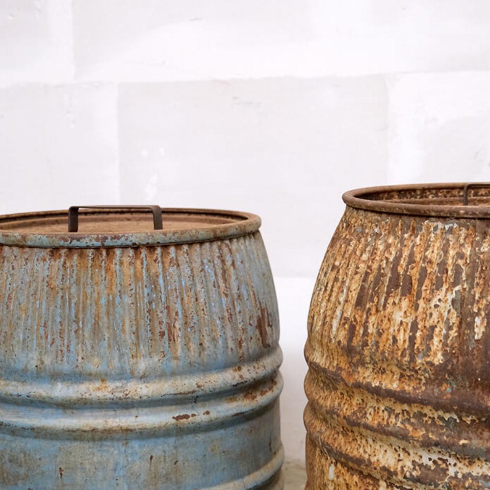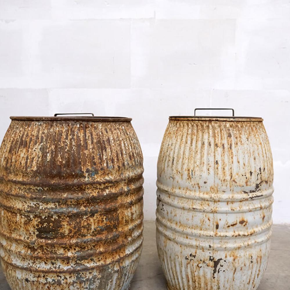 If you love raw charm and industrial details, these old metal barrels are just the thing for you. Each one has its own patina, color tone, and rust pattern, telling the story of many years of use. With a height of approx. 60–65 cm, they're easy to integrate into your interior, whether as storage, a side table or simply a decorative piece with character. Some are bluish, others white or deeply rusted. But they all have one thing in common: they don’t try to be anything they’re not. They're worn. They're authentic. And full of personality. Please note: All barrels vary in color and look. That’s part of their story. And their strength.