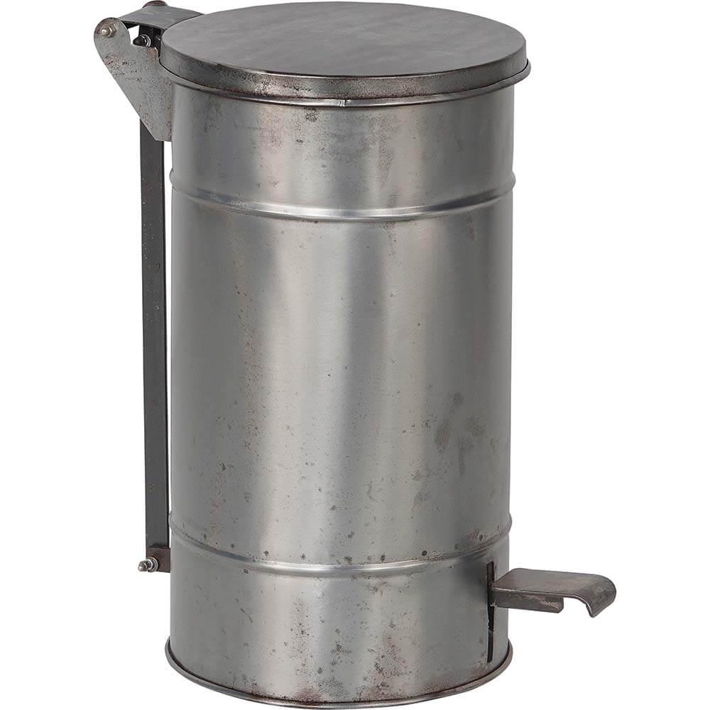 This pedal trash bin is made of metal and has a raw, industrial look. The simple and practical pedal function makes it easy to open the lid, offering both hygienic and convenient use in everyday life. The minimalist design of the trash bin fits perfectly into a kitchen, an office, or store with a rustic or masculine touch. Its worn and patinated appearance adds authentic charm, giving the space character. It is also available in size L.