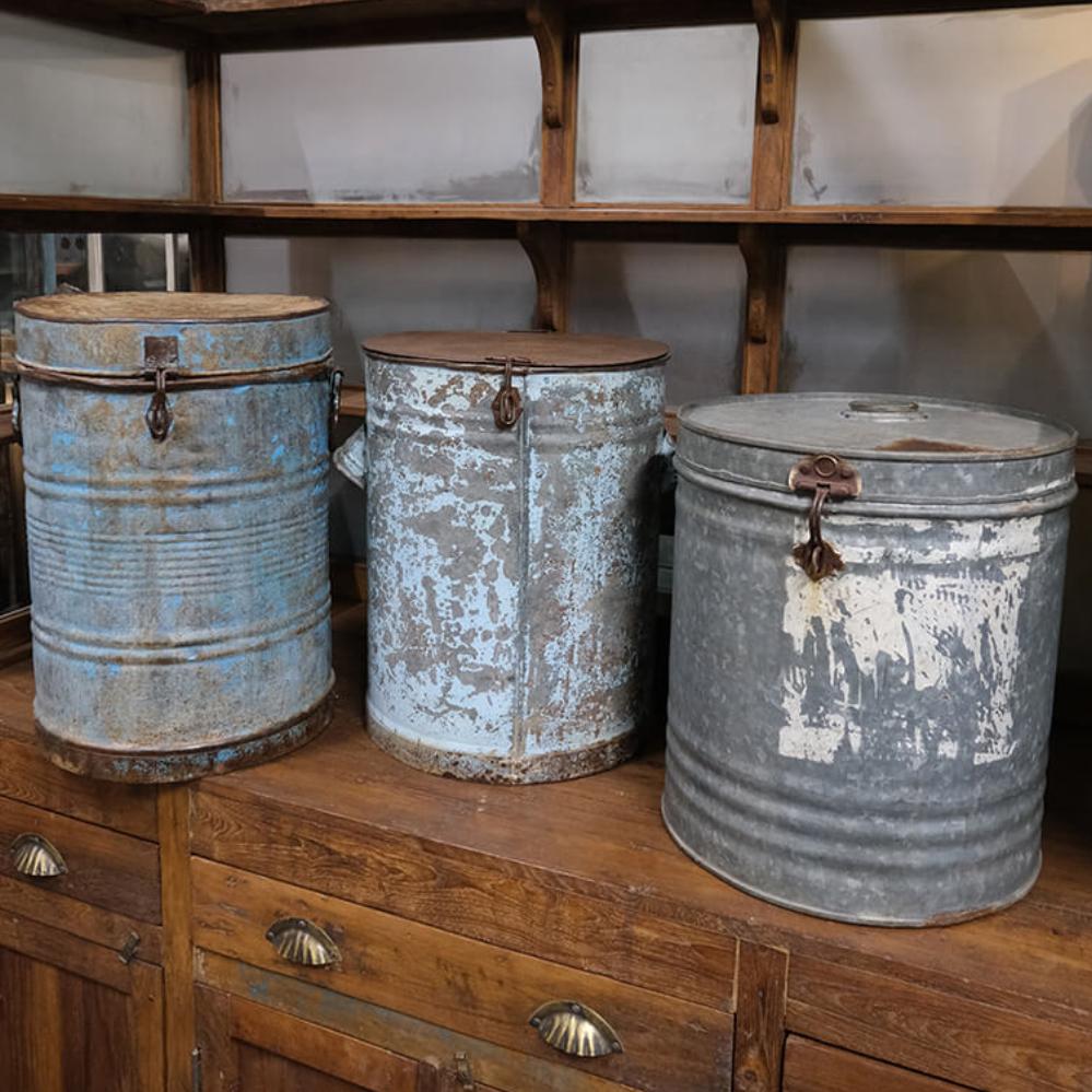 Super cool and extremely decorative old vintage barrel with lid. Use the barrel in your decor to create a personal and unique expression. For example, use the barrel as a unique rubbish bin, laundry basket, umbrella holder or with a plastic insert as a pot cover for a large plant or tree. Since these are old barrels, all are different in color and size. The barrels are not waterproof, and therefore we recommend that you use a plastic / glass insert when using it for plants.