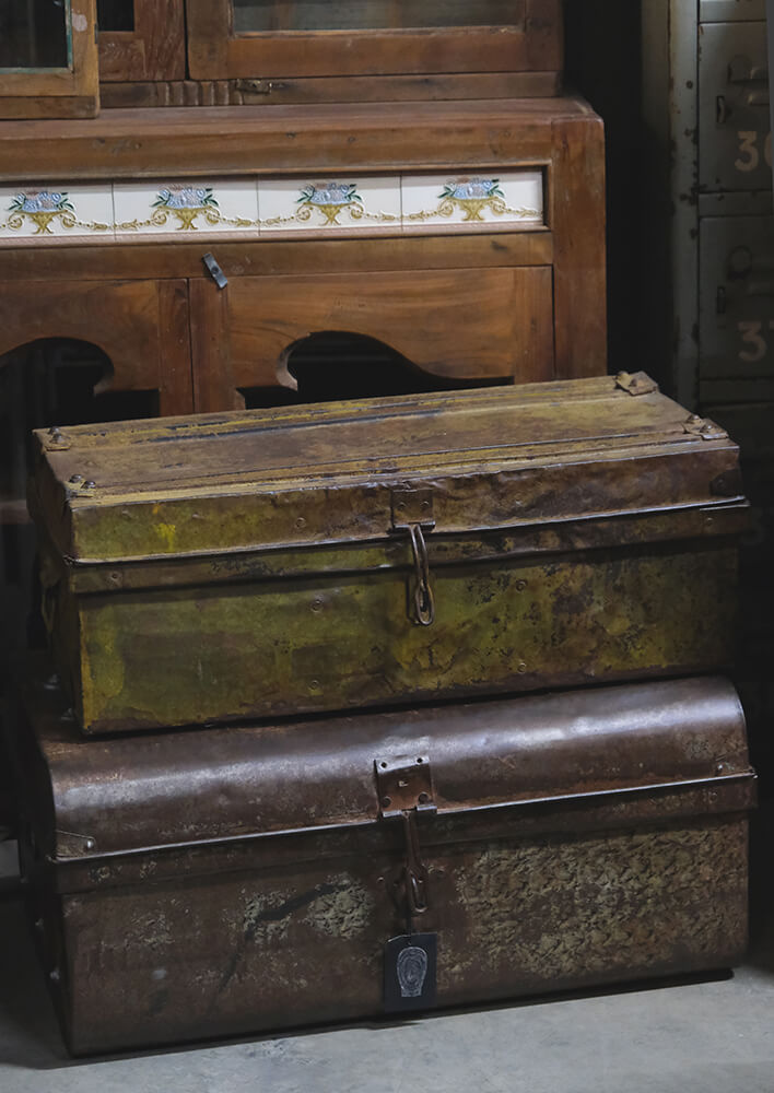 These suitcases can already tell their anecdotes from India, but have now traveled all the way to Denmark, ready for new adventures. The iron suitcases have the most beautiful patina and many wonderful details. Use them to store blankets, bedding, vases etc. These two iron suitcases will certainly add an authentic atmosphere to your interior. The small suitcase measures: H:23cm W:60cm D:37cm