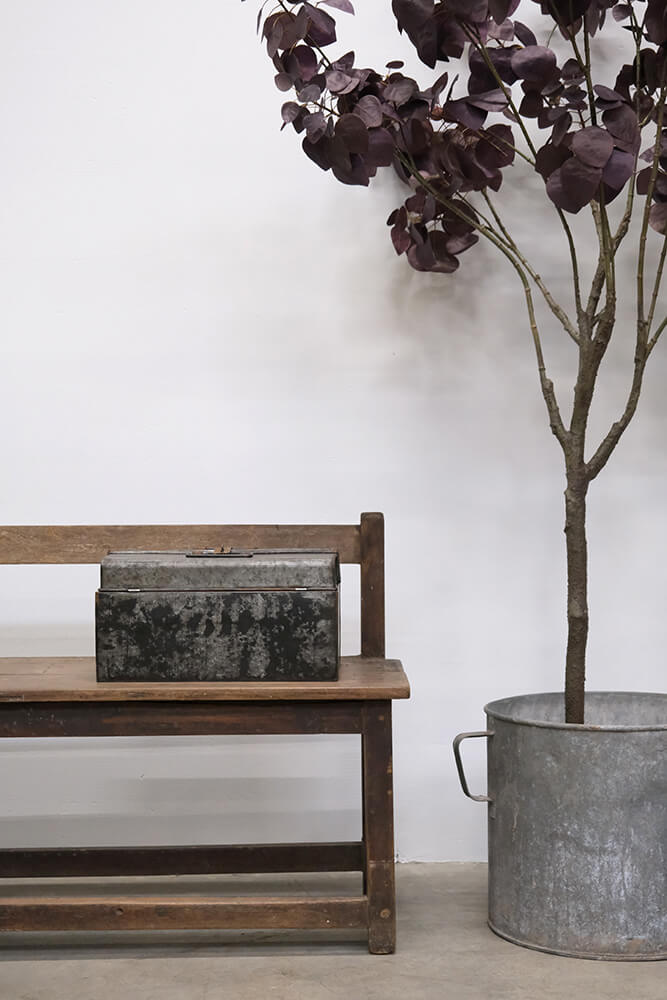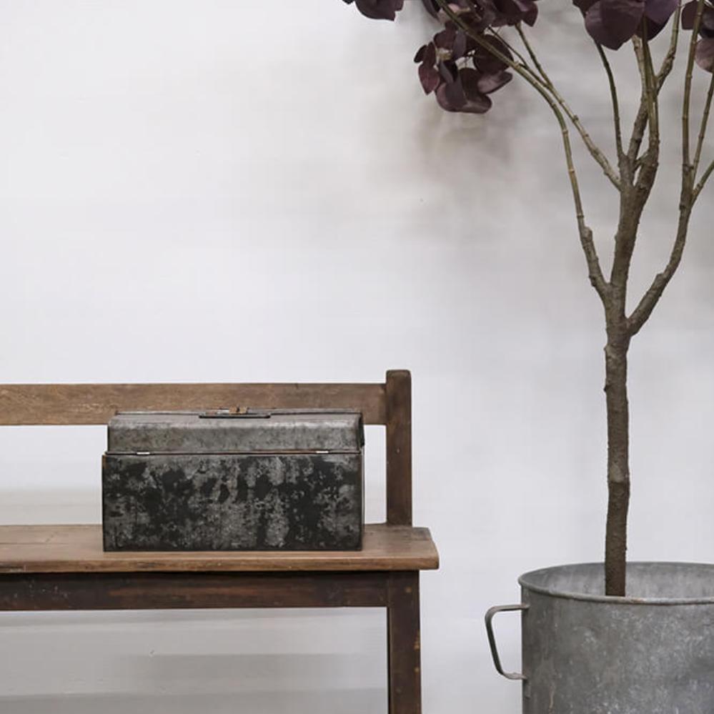 This raw metal box is the perfect example of industrial design with an edge. The sturdy construction and worn surface give the box a raw and authentic look. With its distinctive locking mechanism, the metal box is both practical and masculine. Use it as a cool storage solution in the kitchen, office, or store, where it can hold everything from small items to tools. It also works perfectly as a unique decoration or to add a raw detail to your decor. The metal box has a rugged patina, making it a statement piece in any room.