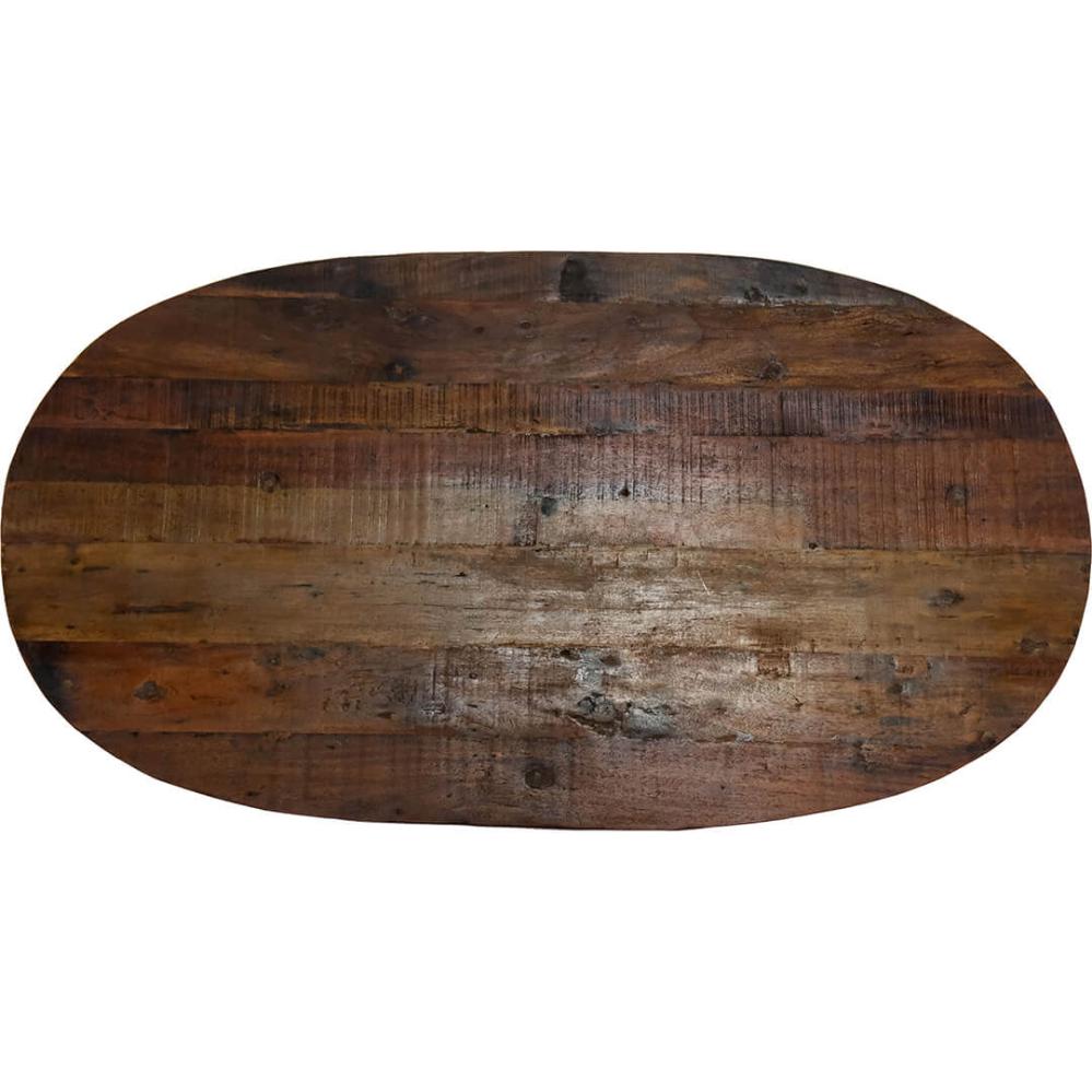 Beautiful table top in dark reclaimed wood. The oval shape gives the decor a wonderful, dynamic element. The Amadeus table tops are available in several different sizes and shapes, and can be combined with most of the bases that you find in the shop. The table top is best suited with one of our large bases SG1937.