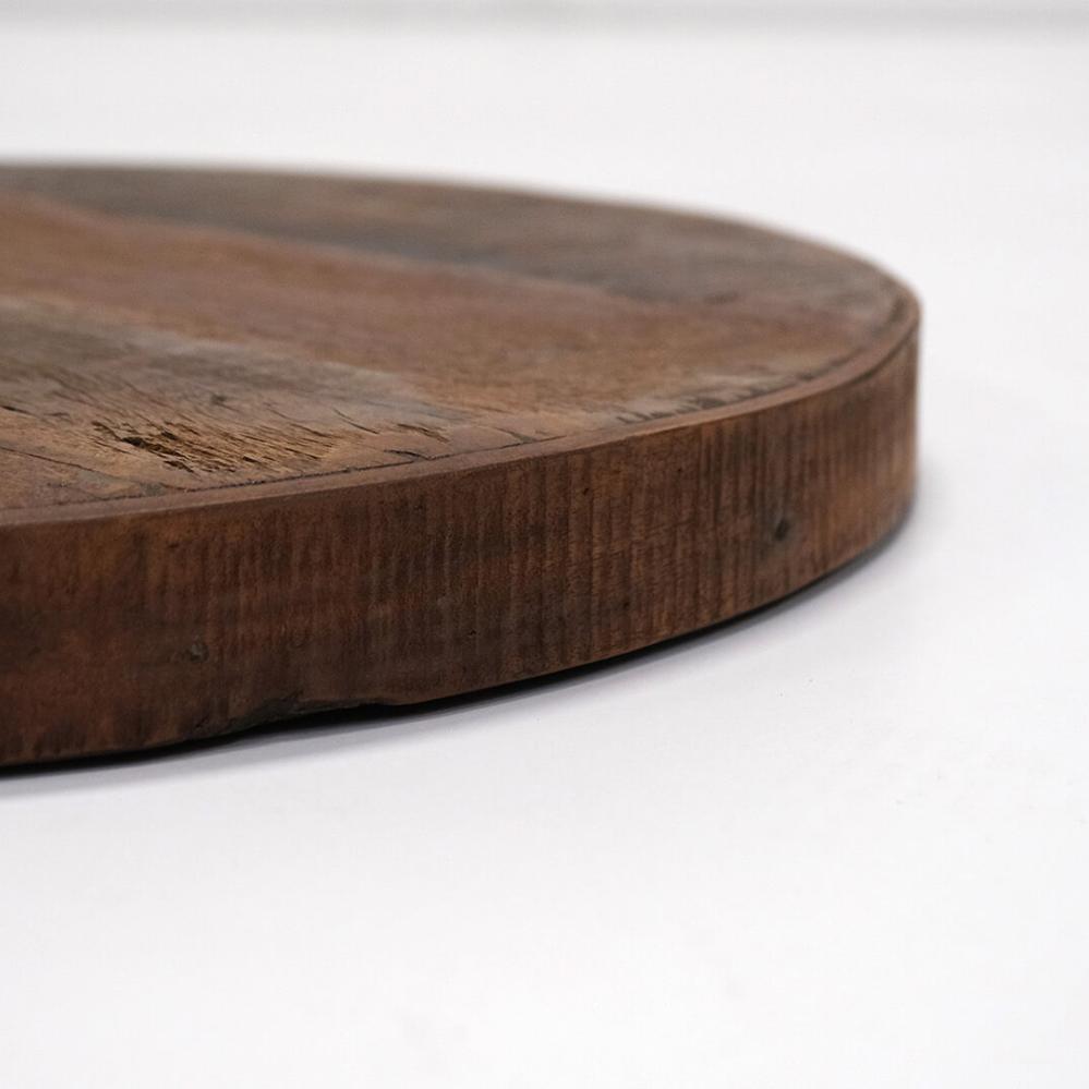 Beautiful, round table top in dark reclaimed wood. This beautiful table top is perfect for an intimate small cafe table. The table top is also available in a slightly larger version with a diameter of 70 cm. The table top fits most of our bases.