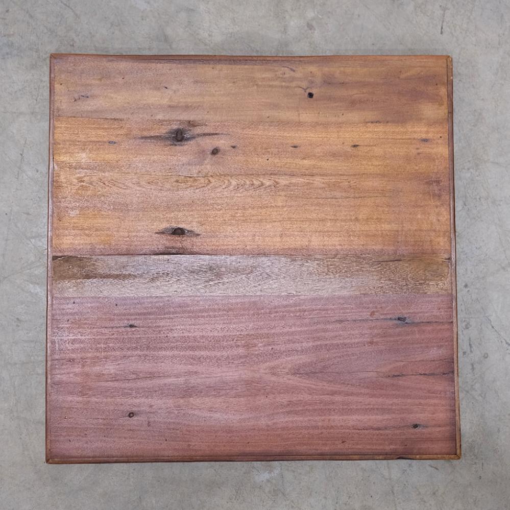 This reclaimed wood tabletop measures 60 x 60 cm and radiates character and warmth. The beautiful color variations and natural markings in the wood give it an authentic and charming look. Its sturdy construction makes it ideal for cafés, restaurants, and homes with a rustic or industrial style. The tabletop pairs perfectly with the bases available in our webshop, where you can also find other sizes in the same material. A rustic and stylish solution that combines raw charm with functionality.