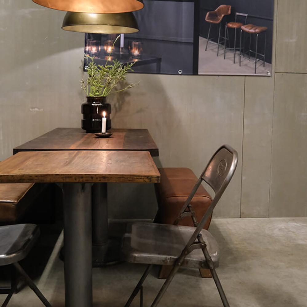 Complete the rustic look with an Anton table base in iron with a round foot. This raw table base for café tables adds that final rustic touch that binds the decor together. This base fits all of our café table tops (60x70, 70x70, 60x60, Ø 60, Ø 70 and Ø 80). For larger table tops, 2 bases are required. The tables can be combined with our extensive range of chairs to create a truly cool look. Diameter base 38 cm. / top 57 cm.