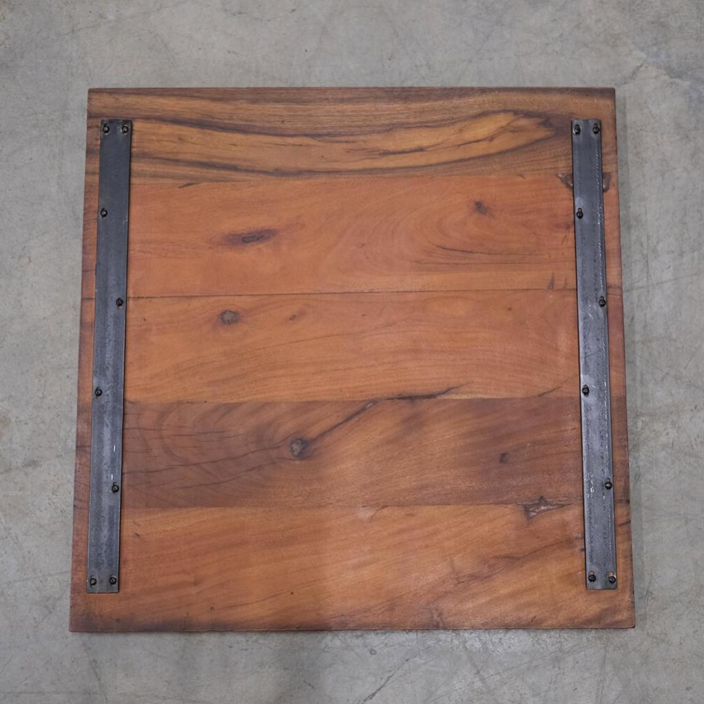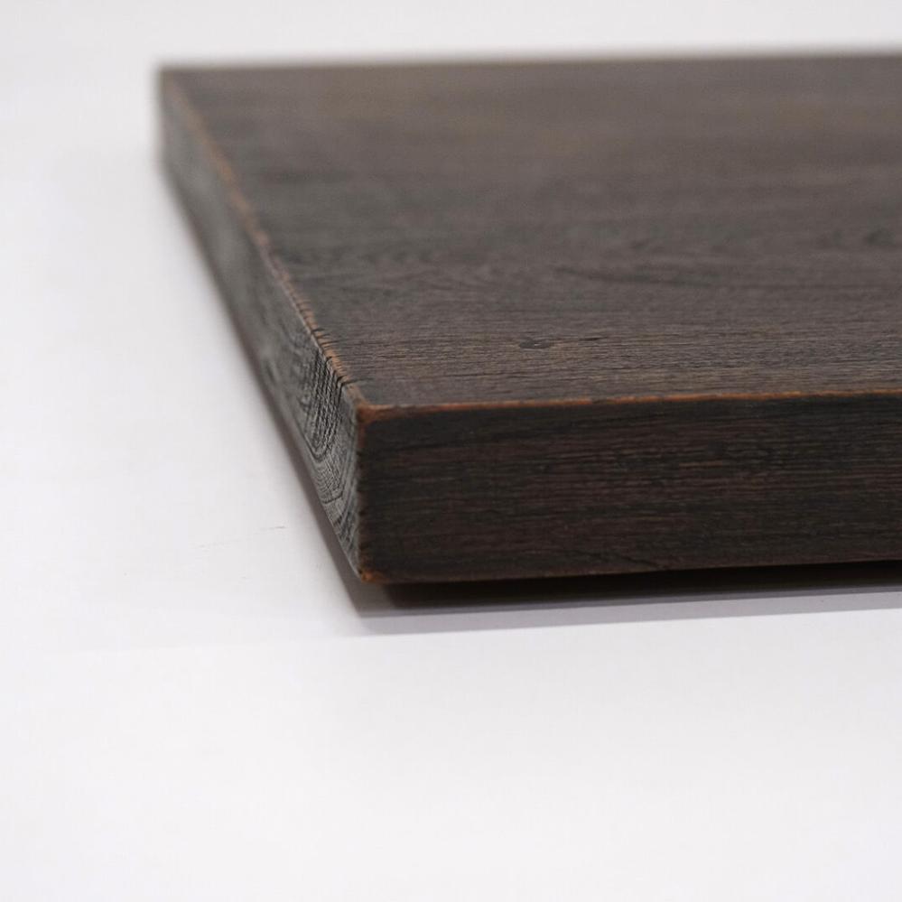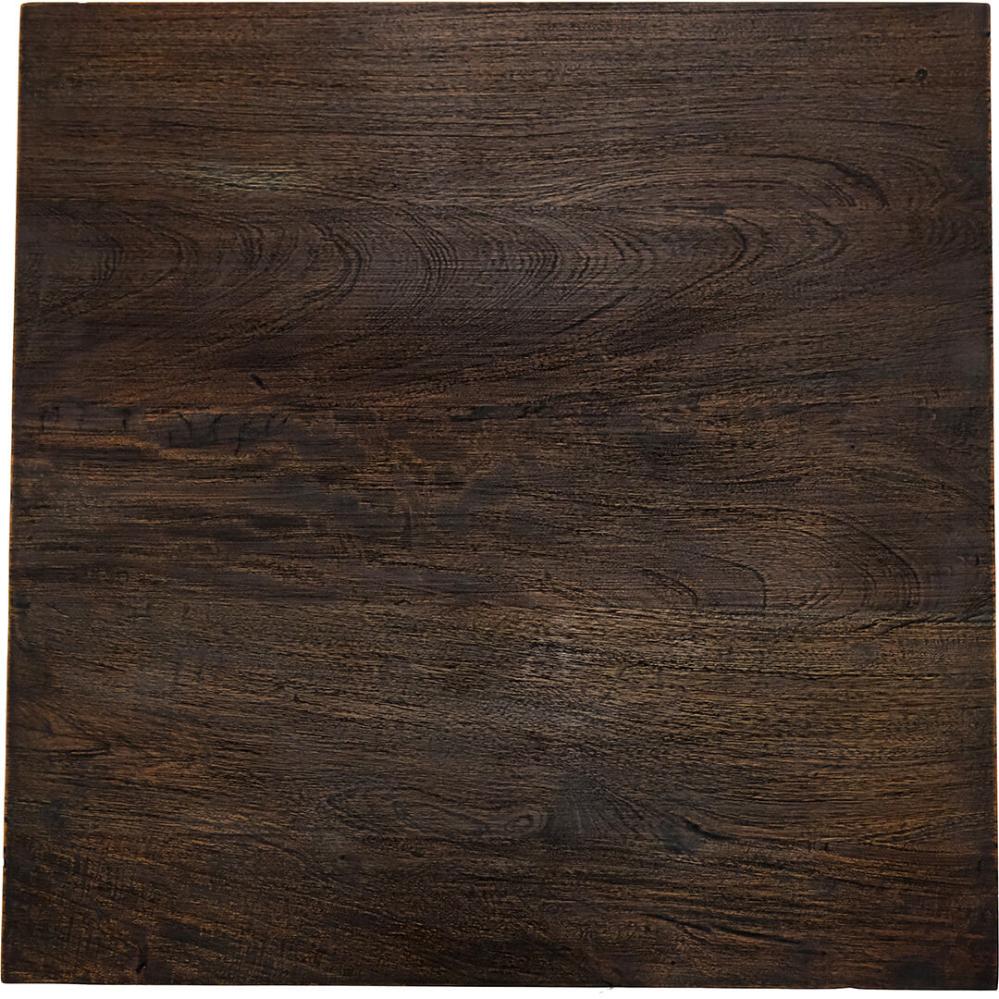Beautiful dark square café table top made of reclaimed wood. The tabletop has been sandblasted to make it as smooth as possible and then lacquered antique black. The structure and shade of the reclaimed wood make the table top vary from dark brown to black. Use the table top in your café or restaurant with one of the beautiful bases available here in the shop.