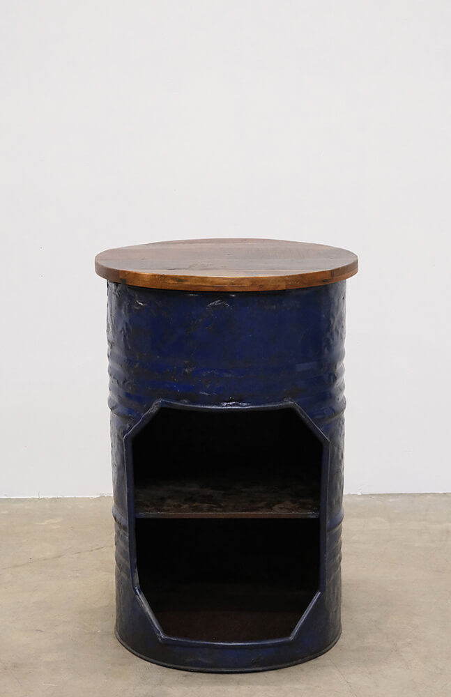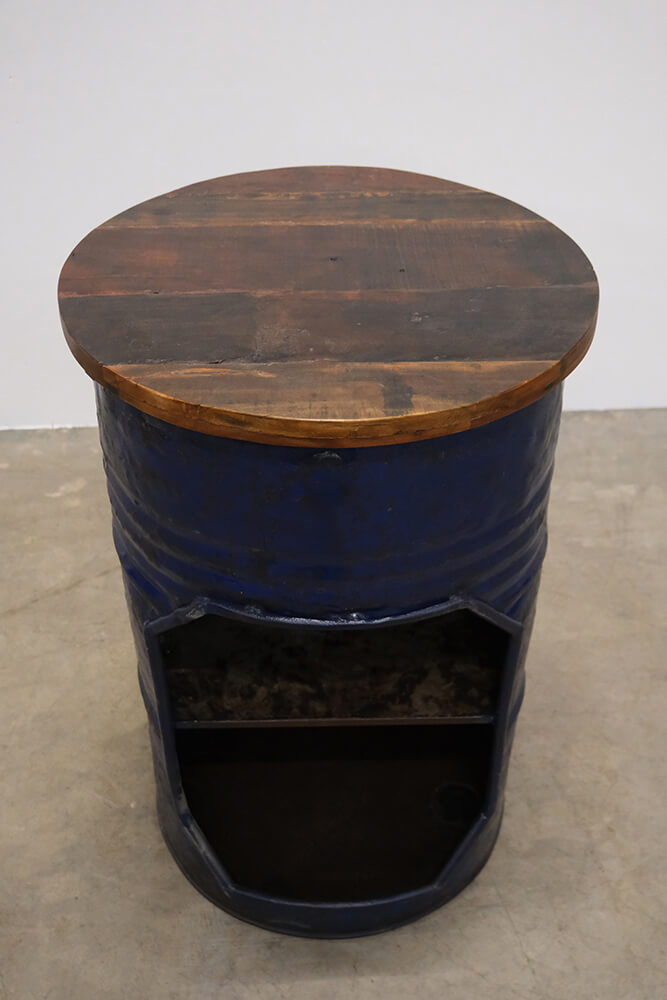 Bar table made from an old barrel