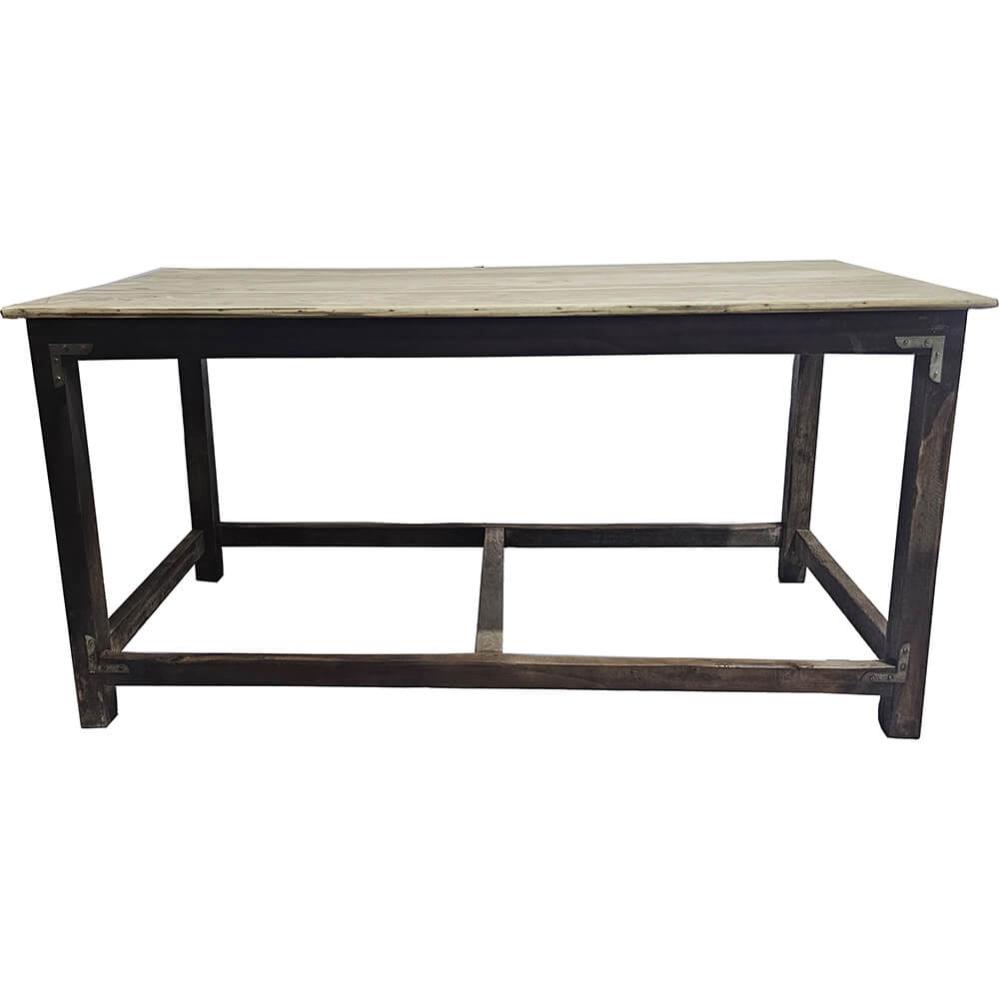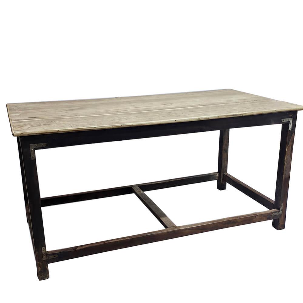This old counter strikes the perfect balance between raw and simple in a rustik design. With its dark, sturdy wooden frame and lighter natural wood top, it blends patina and practicality beautifully. The visible metal brackets and joints add an industrial touch without making it feel too heavy. Ideal for use in a shop as a display table or as a workstation in a café where looks matter as much as function. You can also use it at home as a kitchen island or a workbench, whatever your interior calls for. A piece with edge, character and countless possibilities. Pro tip: add some large wheels underneath to make it easy to move around.
