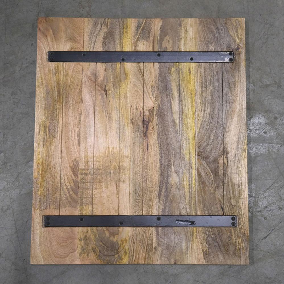 Rectangular tabletop made of solid mango wood with a warm, natural glow and visible wood grain that gives it a rustic and vibrant look. Each piece of wood has its own variations in shades and patterns, making every tabletop unique. Measuring 70 x 60 cm, it is ideal for café tables, small dining spaces, or as a practical solution in smaller rooms. The solid quality makes it both functional and decorative. The tabletop fits most of our bases and is also available in a black version, allowing you to choose the look that best suits your interior.