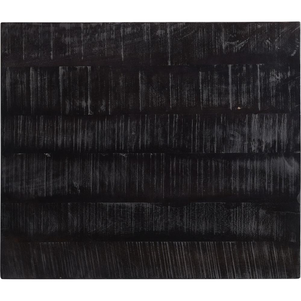 A rectangular tabletop crafted from solid mango wood and finished with a black finish to create a raw and modern expression. The matte, slightly textured surface highlights the natural wood grain, giving the piece a vibrant and characterful look. Measuring 70 x 60 cm, the tabletop is ideal for smaller tables, café settings, or as part of a personal interior project. The robust mango wood ensures durability, while the black finish adds a stylish, timeless touch that fits perfectly into both private homes and professional spaces such as cafés and restaurants. The tabletop fits most of our bases and is also available in a lighter version if you prefer a different look.