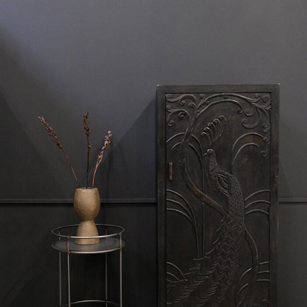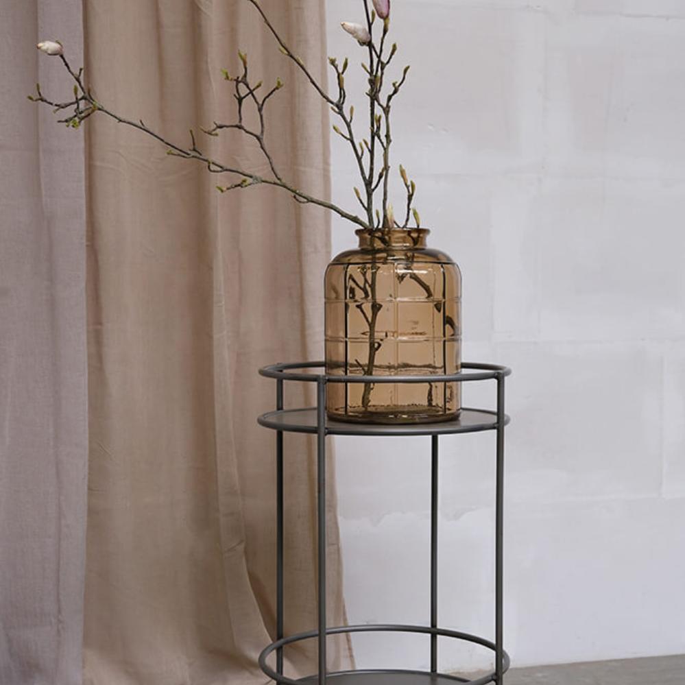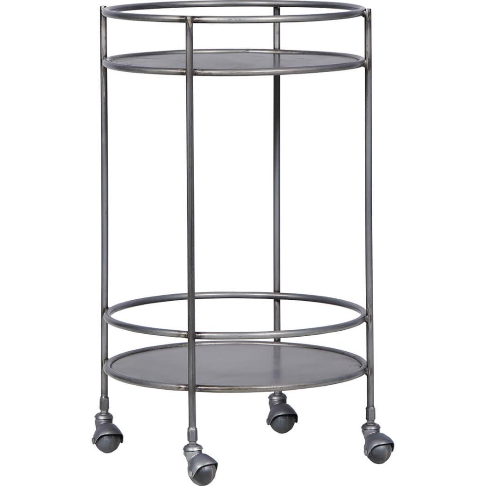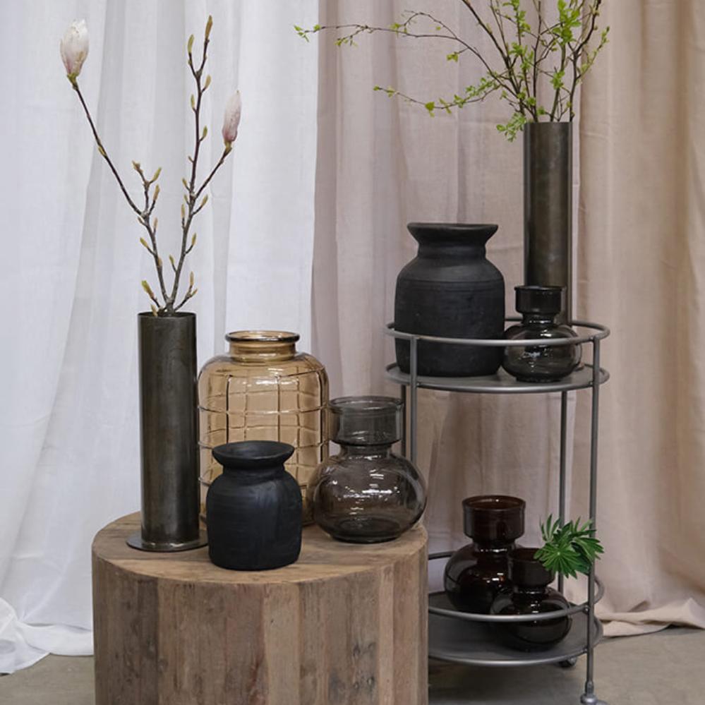 Raw and cool bar cart in clear lacquered iron with 4 wheels. The bar cart has two iron shelves with practical sides that can help prevent the things on the shelves from falling over when you move it around. The trolley is perfect as a rolling bar table, where bottles can be placed below and glasses and accessories above. However, the trolley will also be nice to use in your home to create atmosphere with small still lifes with vases and decorations.