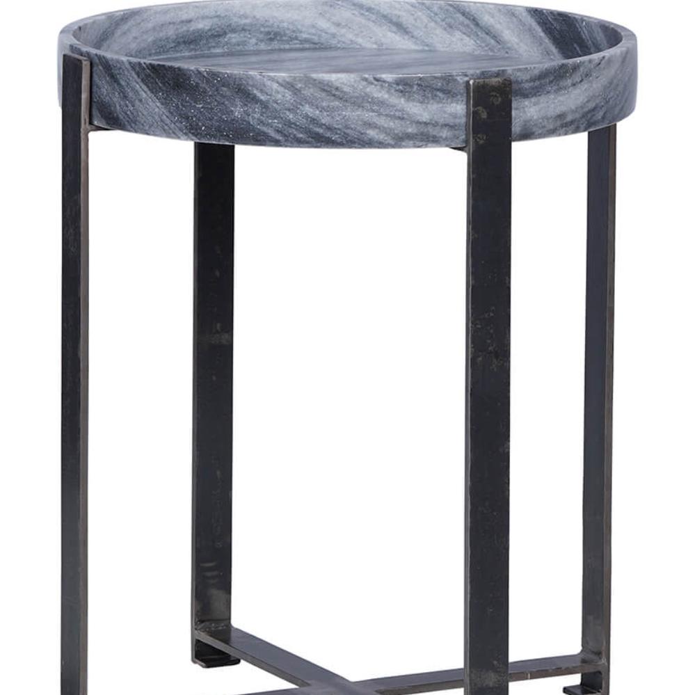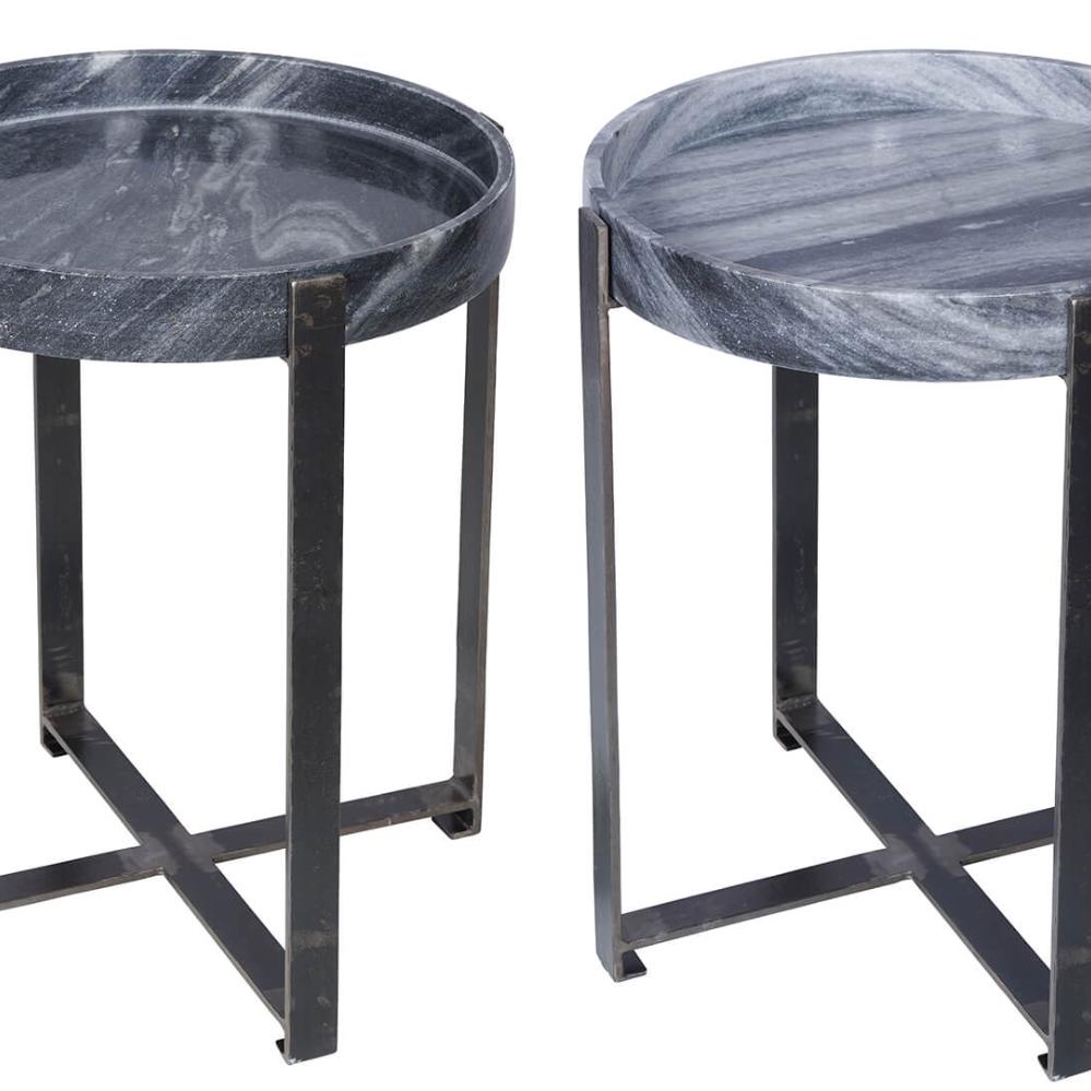 Smart and beautiful round tray table. The tray table appears masculine with a simple design and a lacquered iron base and a round gray marble tray. Use the tray table as a beautiful side table in your home, in your shop or the café. The tray can be removed and used as an independent tray. Please note that the shades of the marble can change from light to dark, and therefore the tray may differ from what you see in the photos.