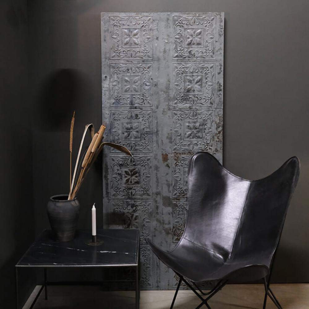 This coffee table features a beautiful black marble top, full of stunning marbling. The base is made of iron, providing an industrial contrast to the more elegant appearance of the tabletop. Here you have a stylish table that fits perfectly into modern decor.