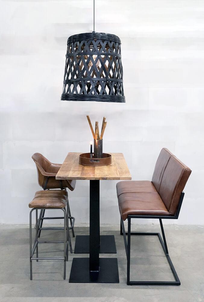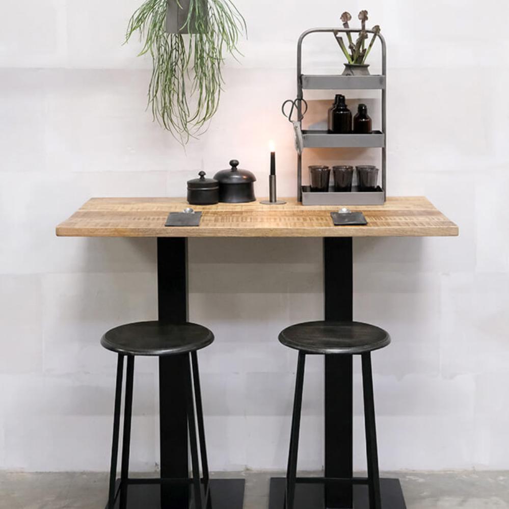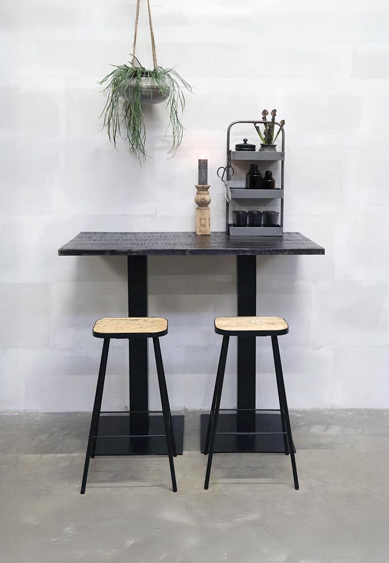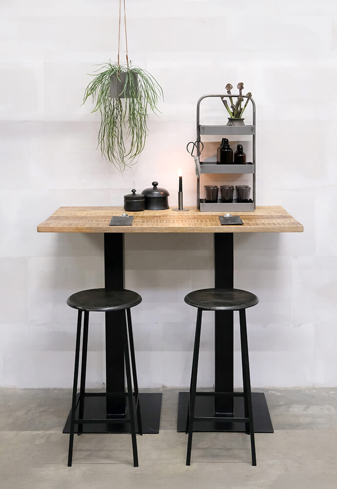 Get up high with Kafka. This high base in black lacquered iron offers endless possibilities. Add a tabletop and use it for standing gatherings or pair it with high barstools for a cozy time. This base fits almost all our raw tabletops available here in the shop (60x70, 70x70, 60x60, Ø60, Ø70, and Ø80). For larger tabletops 2 bases are required. Consider adding a couple of our stylish barstools for a complete look. Diameter base 50 cm. / top 25 cm.