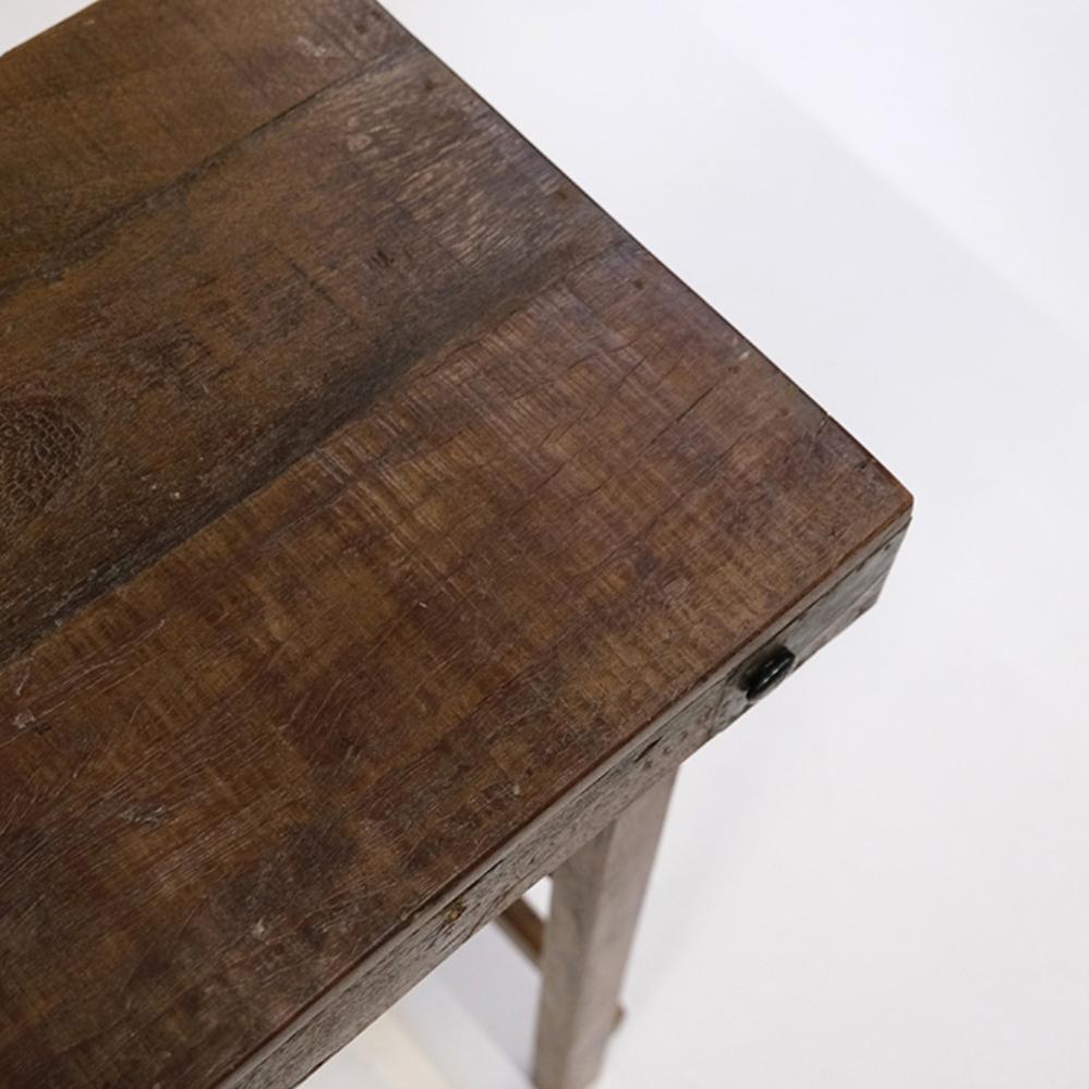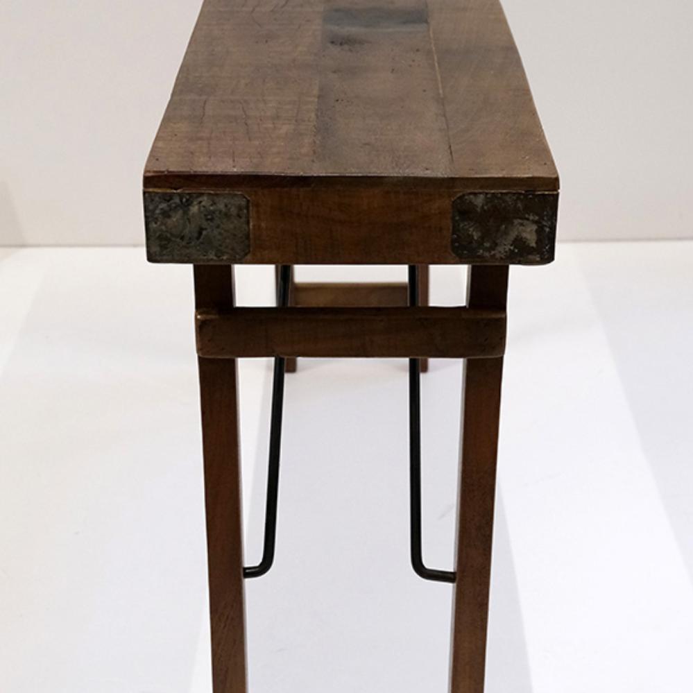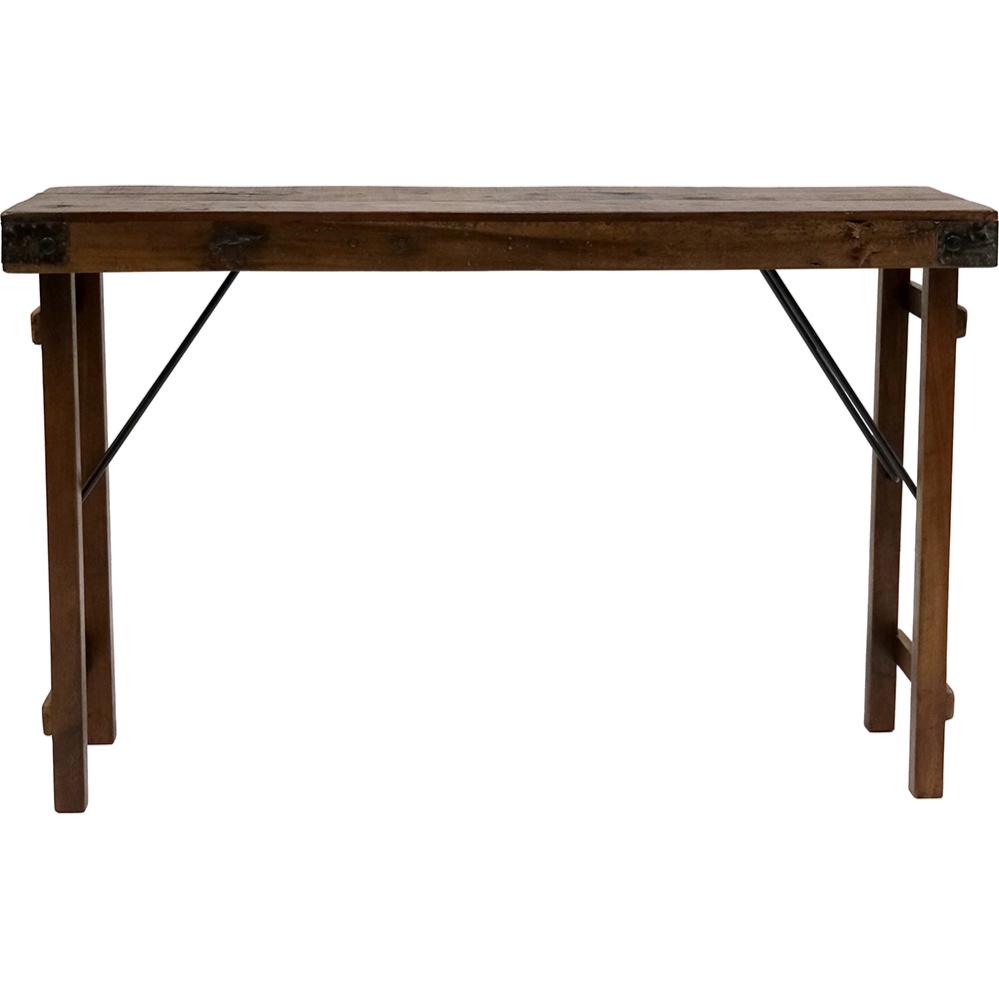 Fine and narrow console table in reclaimed wood. This exquisite table is versatile and can be used in many places in your decor, such as behind the sofa, as a practical side table, or in an entryway. Made from reclaimed wood, the Pramod table exudes an authentic and rustic charm. Its slim design makes it ideal for smaller spaces or as a discreet storage solution, and with its folding legs, it can also be stowed away temporarily. Let the Pramod console table be the functional and stylish element in your decor.