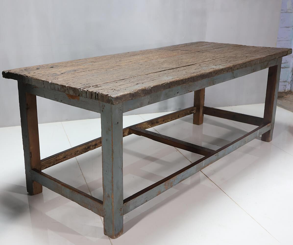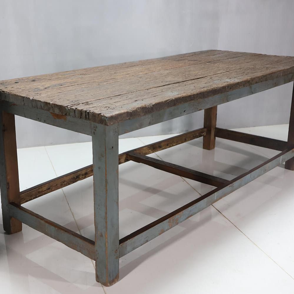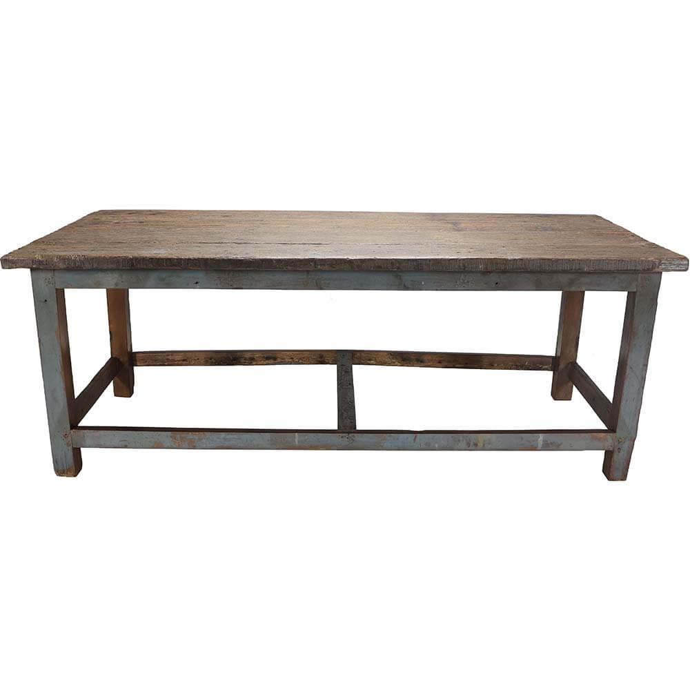 This long table has a rustic patina that highlights its authentic character. The wooden planks that make up the tabletop are speckled with signs of wear and other raw details, giving the table a masculine charm. The table is ideal as a creative workspace, a cool sales table, or a serving table. Its used look gives the table a relaxed vibe that's perfect for a laid-back yet style-conscious decor. The long table is wax-treated.