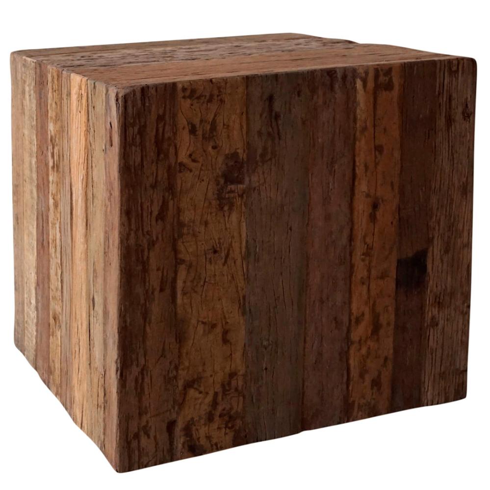 This cubist sculpture-like piece of furniture made of reclaimed wood is a delight to the eye, and can be used as both a stool and a table. There are 3 hidden wheels that make the furniture flexible and easy to move around. Will look good in any kind of rustic decor.