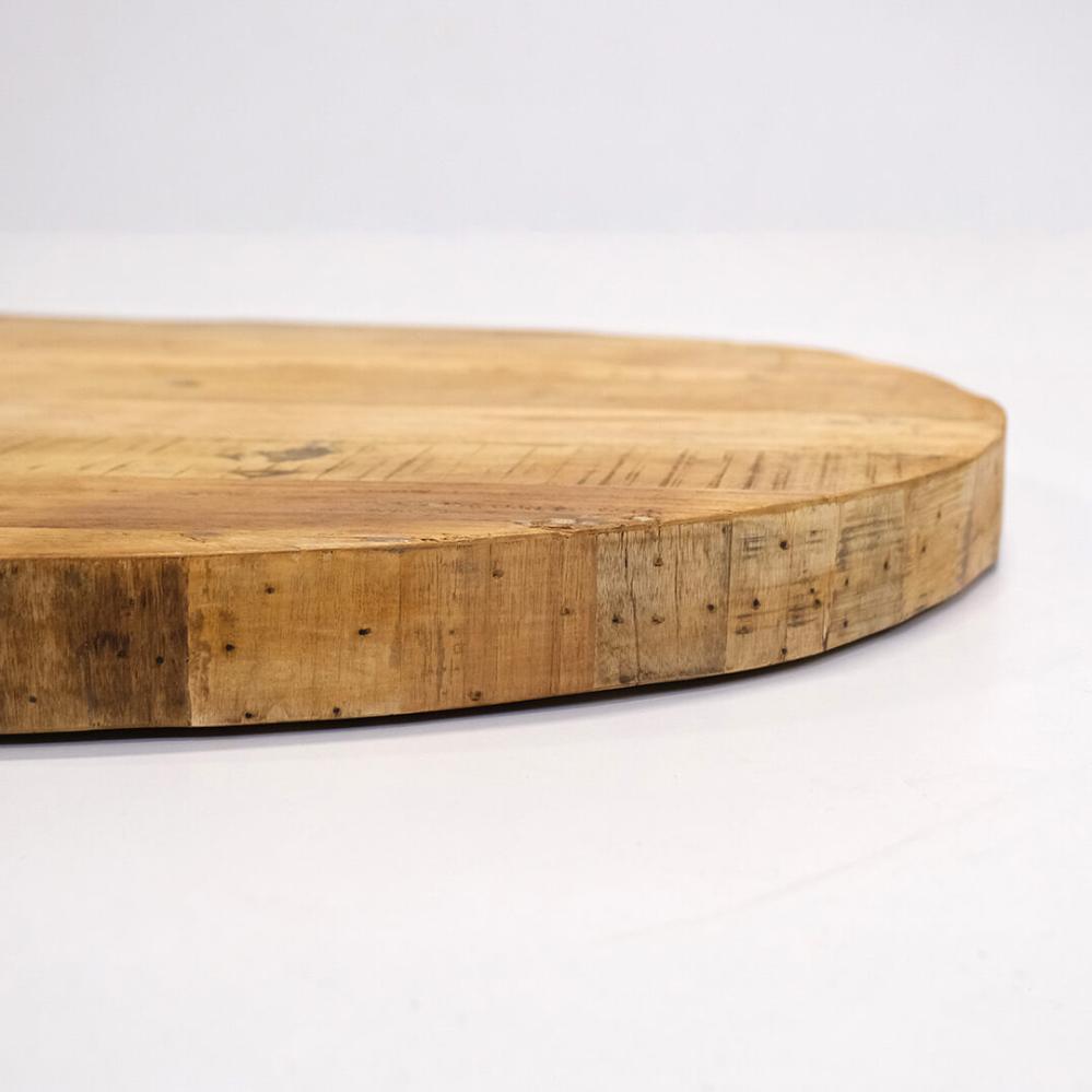 This beautiful light oval tabletop is made from patinated reclaimed wood. The surface has been sandblasted and finished with a matte lacquer, preserving the natural texture of the wood while protecting it. As the tabletop is made from reclaimed wood, each piece will have its own unique tone and character. It fits best with one of our large bases, SG1937, and is an ideal choice for those who want a rustic and authentic look in their interior.