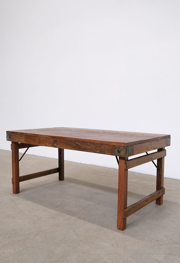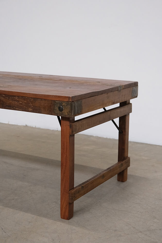 The Vienna coffee table in reclaimed wood is a simple and sturdy table without unnecessary fuss. Made from reclaimed wood, it clearly shows traces of its previous life with subtle colour nuances, small marks, and natural variations that make each table completely unique. The clean, straight lines are balanced by the dark metal fittings, which add character and emphasise the table’s robust construction. At the same time, Vienna has a practical feature: it can easily be folded, allowing you to quickly adapt the space as needed, whether for guests, everyday use, or extra floor space. Use it as a coffee table or as a flexible element in your interior. Vienna is the table you choose because it works, and because you appreciate things that look exactly like what they are.