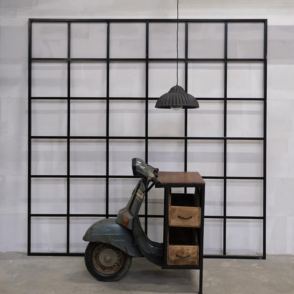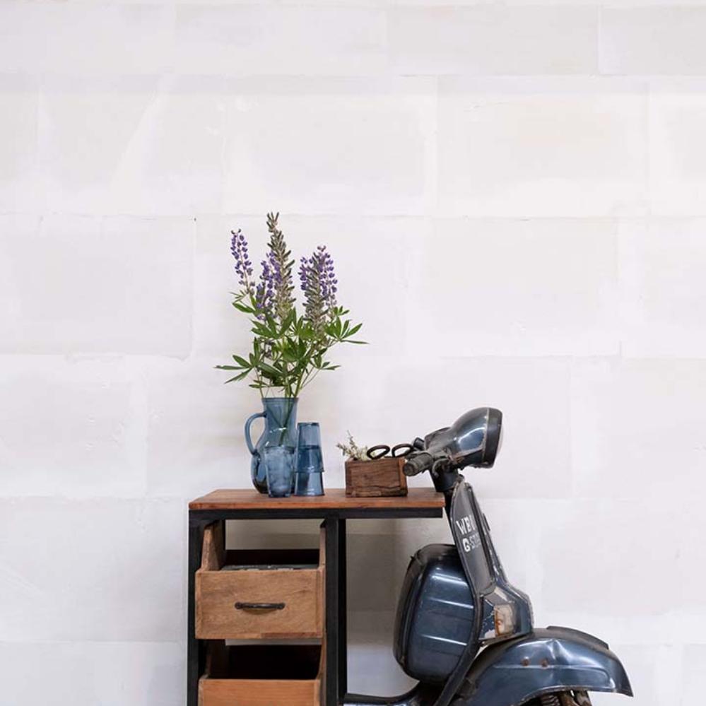 Do you also love this fun scooter front with 2 drawers? Since the front of the furniture is made of old used scooters from India, the product varies and no two are alike. The 2 robust drawers with handles can be opened from both sides. The drawers and table top are made of reclaimed wood. The counter can be used in your bar or your shop as a wonderful eye-catcher, or in your home where it will definitely create attention.