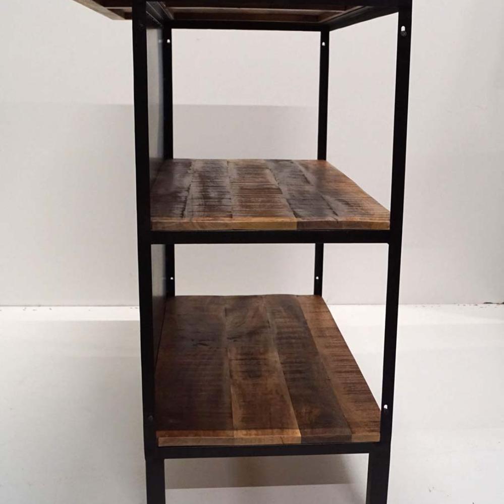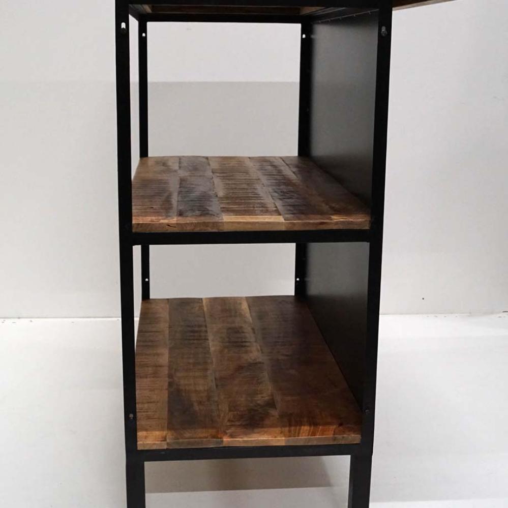Create your own unique bar with this middle module, which combines raw iron and warm mango wood. The countertop and two shelves provide ample storage space, and with a shelf height of 42 cm, you can easily organize your bottles, glasses, and bar equipment. The module can stand alone or be combined with the left module (M06053LE) and right module (M06053RI) to expand the bar counter as needed. Perfect for cafés, restaurants, or homes where a raw and stylish bar solution is desired.