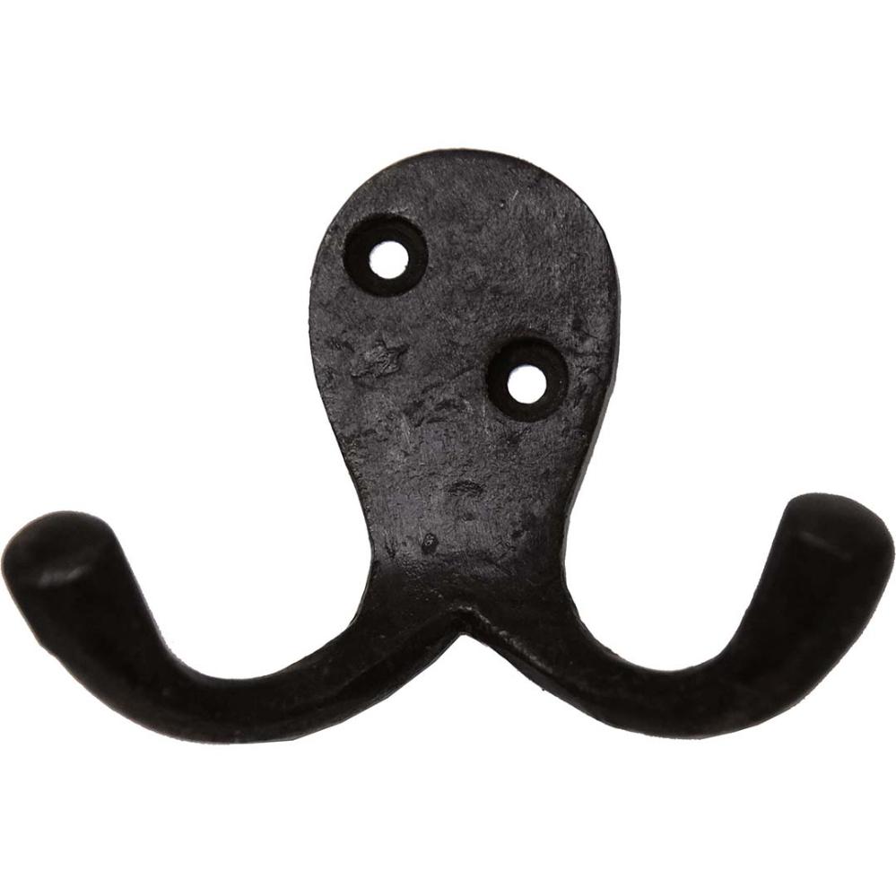 Raw and simple double hook in iron. Use it e.g. for your tea towels, or hang several next to each other in your wardrobe for jackets. The hook has two holes so that it can be mounted securely on the wall.