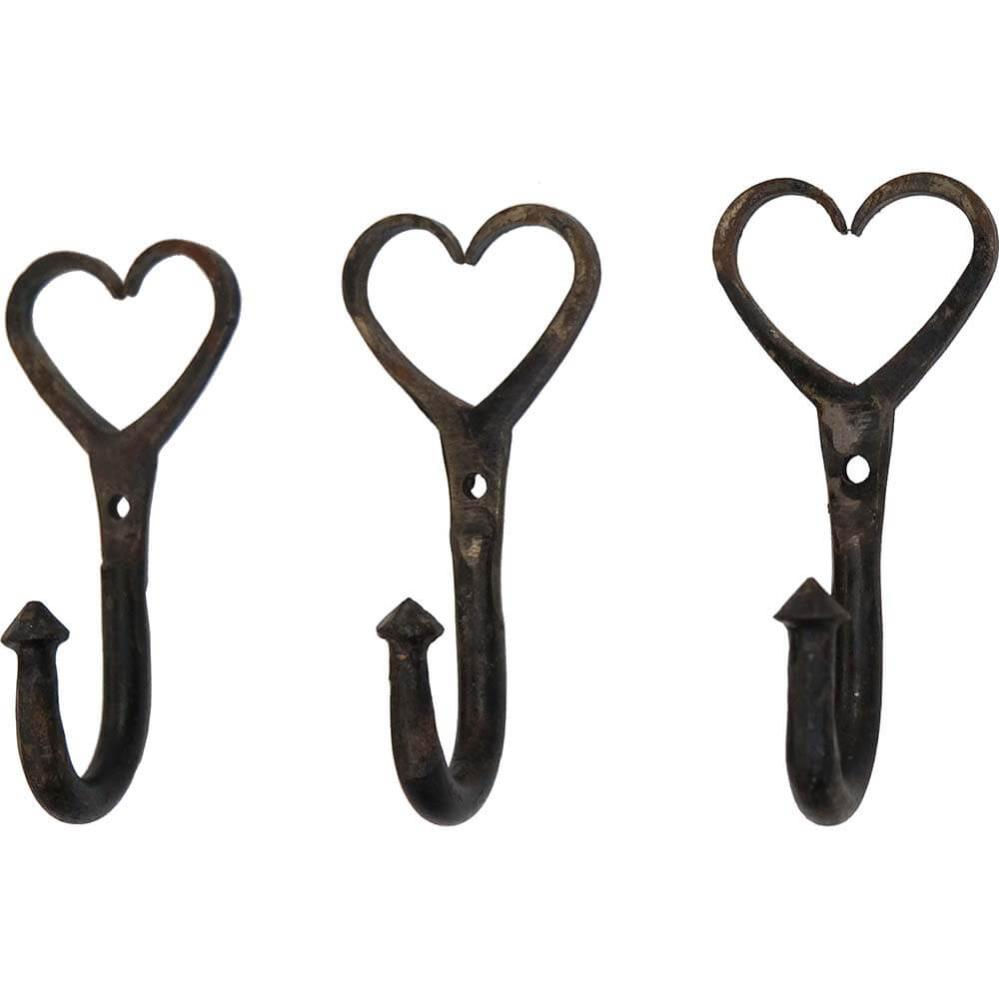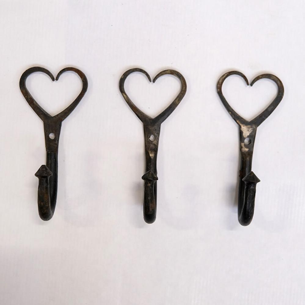 This iron hook is designed with a charming heart at the top, giving it a lovely and rustic appearance. The hook is handcrafted from sturdy iron and has a dark, patinated surface that adds character. The pointed end of the hook provides a vintage look and makes it practical for hanging jackets, bags, or other items. It can be easily mounted on the wall with a single screw hole in the center. Perfect for adding a cozy element to the entryway, kitchen, or bedroom.