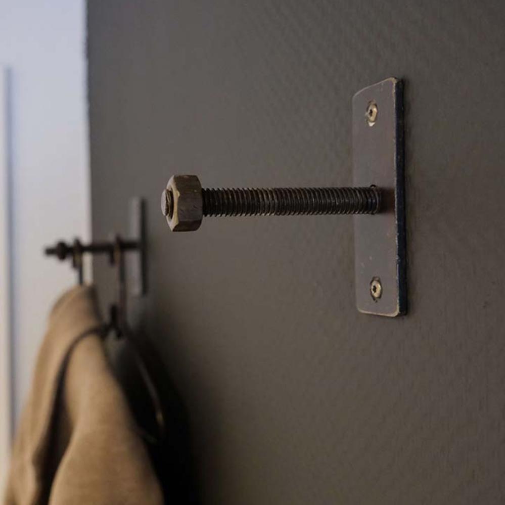 Hook made of iron. With a simple and industrial design this little quirky hook is both an eye-catcher and very functional. Use it in all rooms of the house. In the kitchen for tea towels and kitchen utensils, in the bathroom for towels and jewelry, in the living room for pictures and other decoration and in the entrance hall for scarves and accessories. A single hook with so many options. The small iron plate has two holes so that it can be mounted securely on the wall. You can hang it both vertically and horizontally, it's up to you.