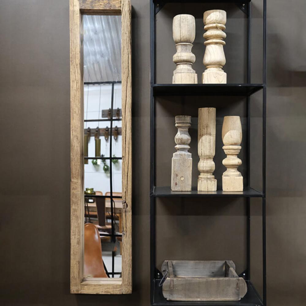 Nice, rustic mirror with raw frame in reclaimed wood. If you have limited space on the wall,, this narrow but still stunningly beautiful wall mirror might be a good solution. The frame around the mirror is distinctive with lots of rustic details. Use it in your fitting room in your store, in the restroom of your cafe or in any room in your home.