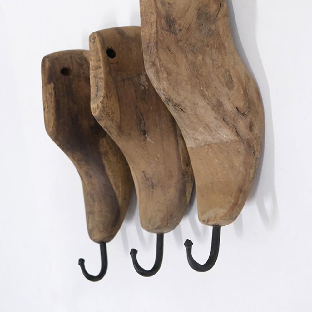 Shoe hooks made from old children's shoe lasts - a creative and playful addition to your decor. Each hook is crafted by reusing old children's shoe lasts, giving it a charming appearance. This original shoe hook is not just a decorative and functional element but also a fun touch that brings a playful and childlike atmosphere to any room.