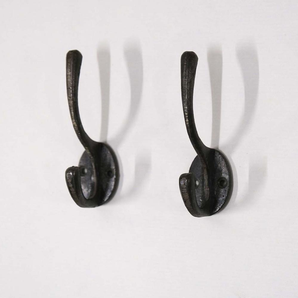 Simple and rustic small double iron hook. Hang one or more on the same wall and create your own coat rack for family and friends. The hook can also be used in other rooms throughout the house. Use it for tea towels, jewelry, scarves, bags and accessories. The two boreholes ensure easy installation. Small irregularities on the hook give an extra charm and a raw look.