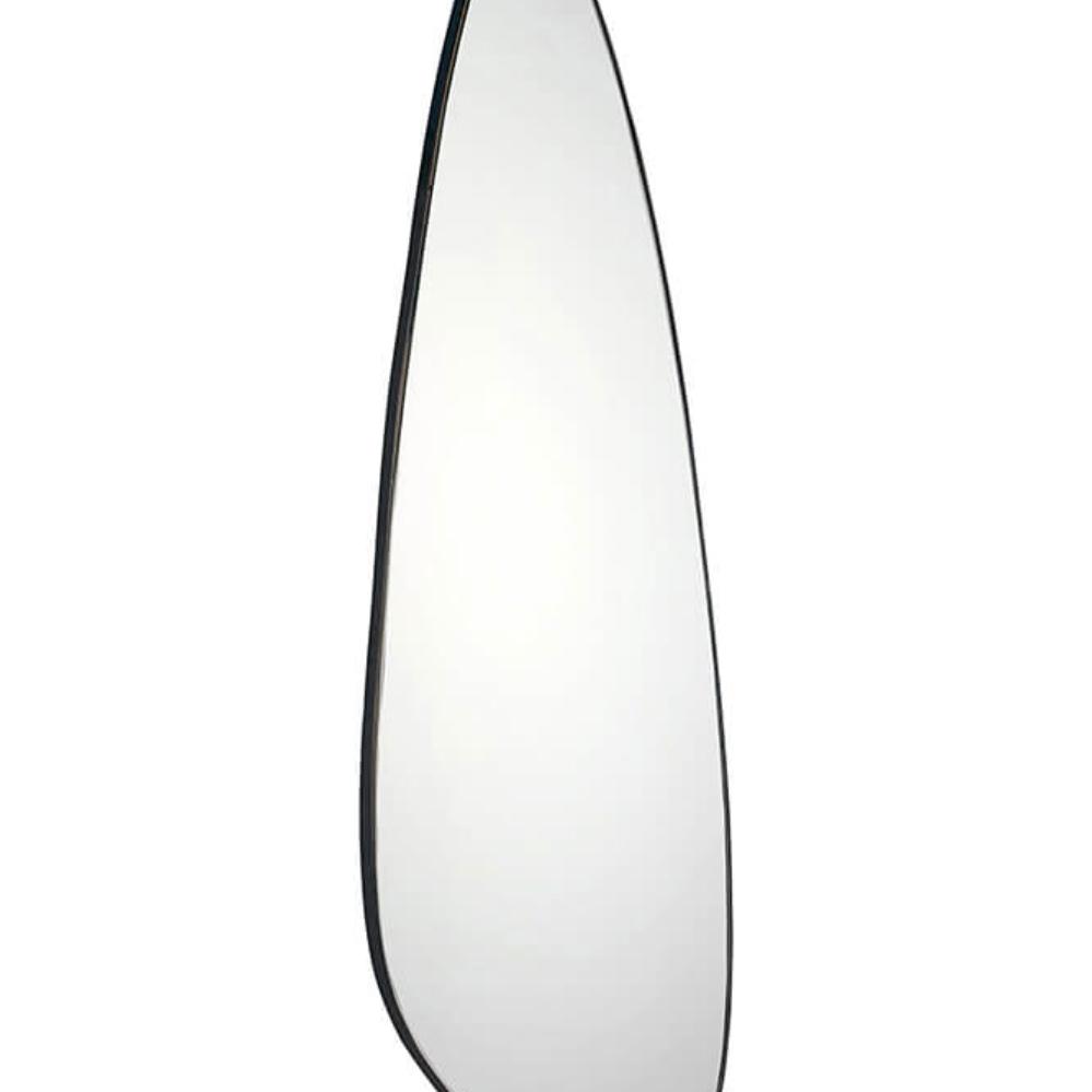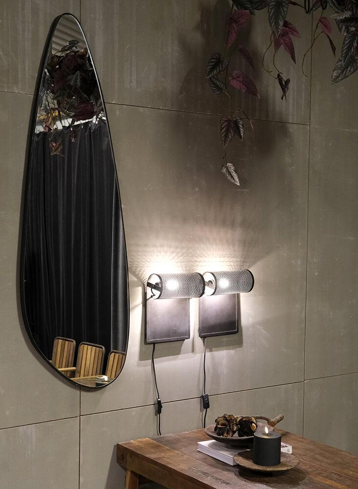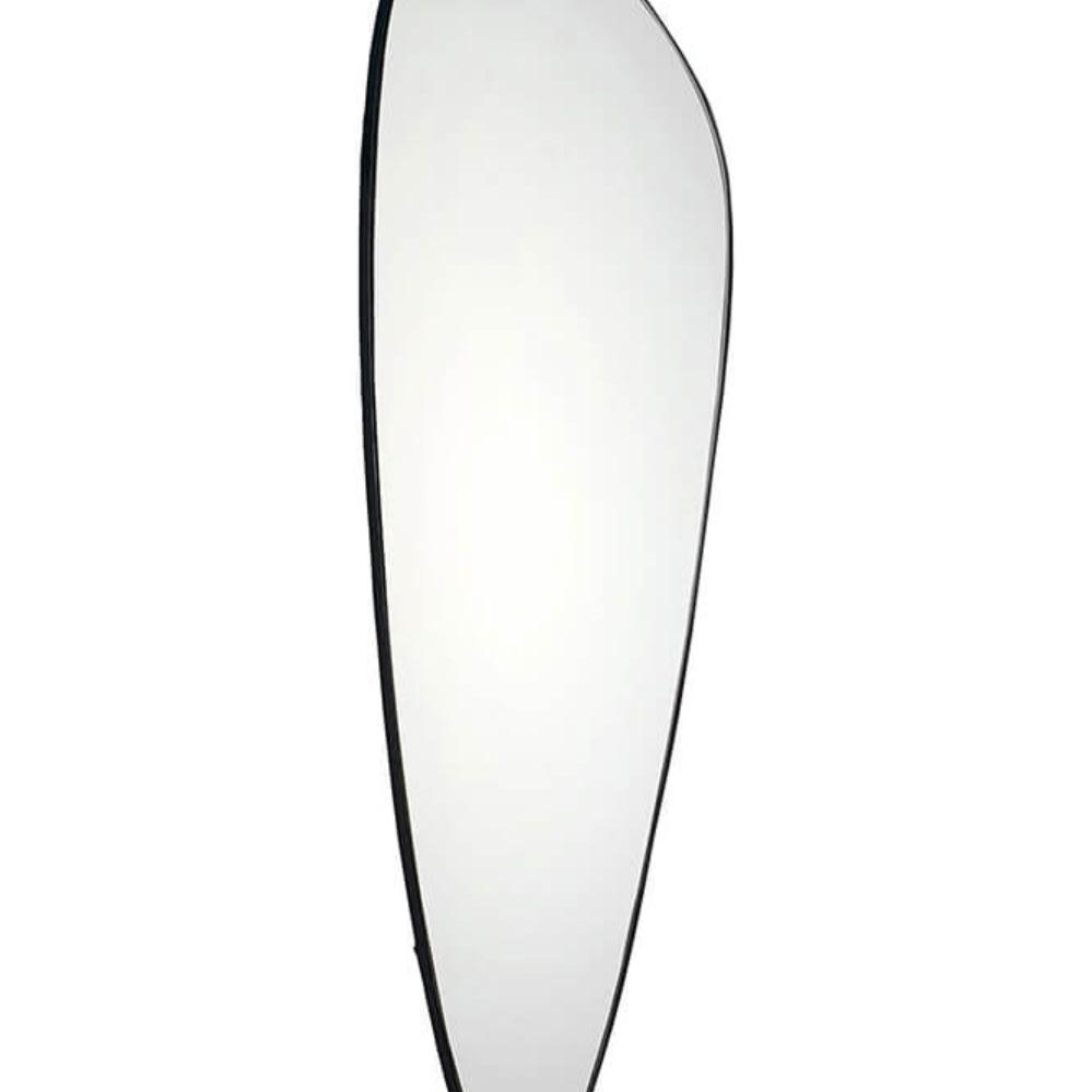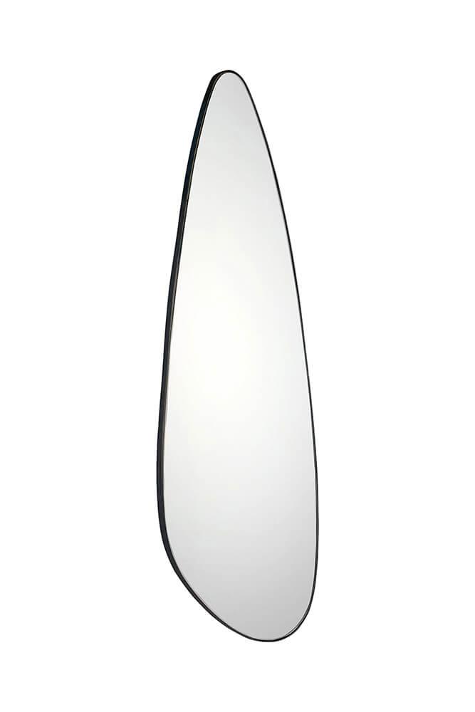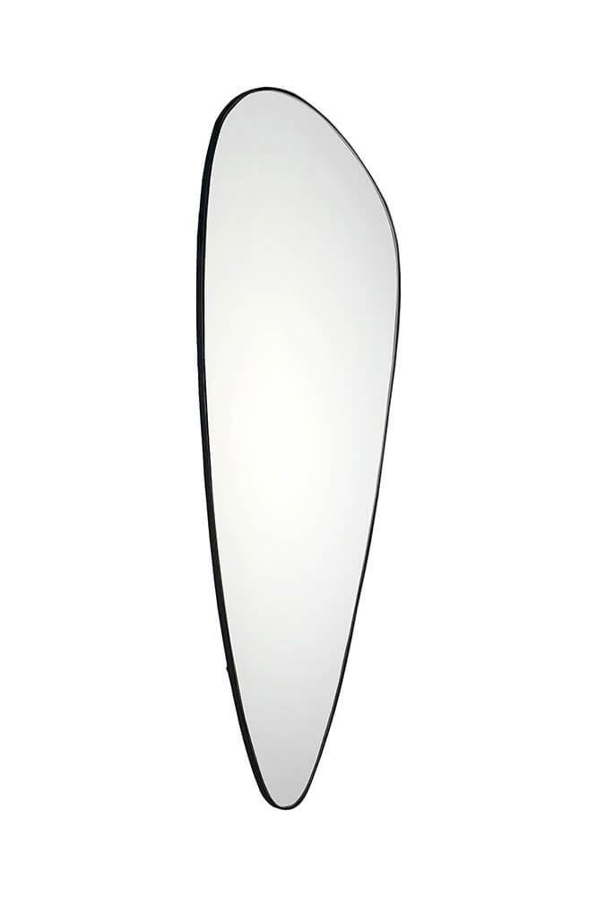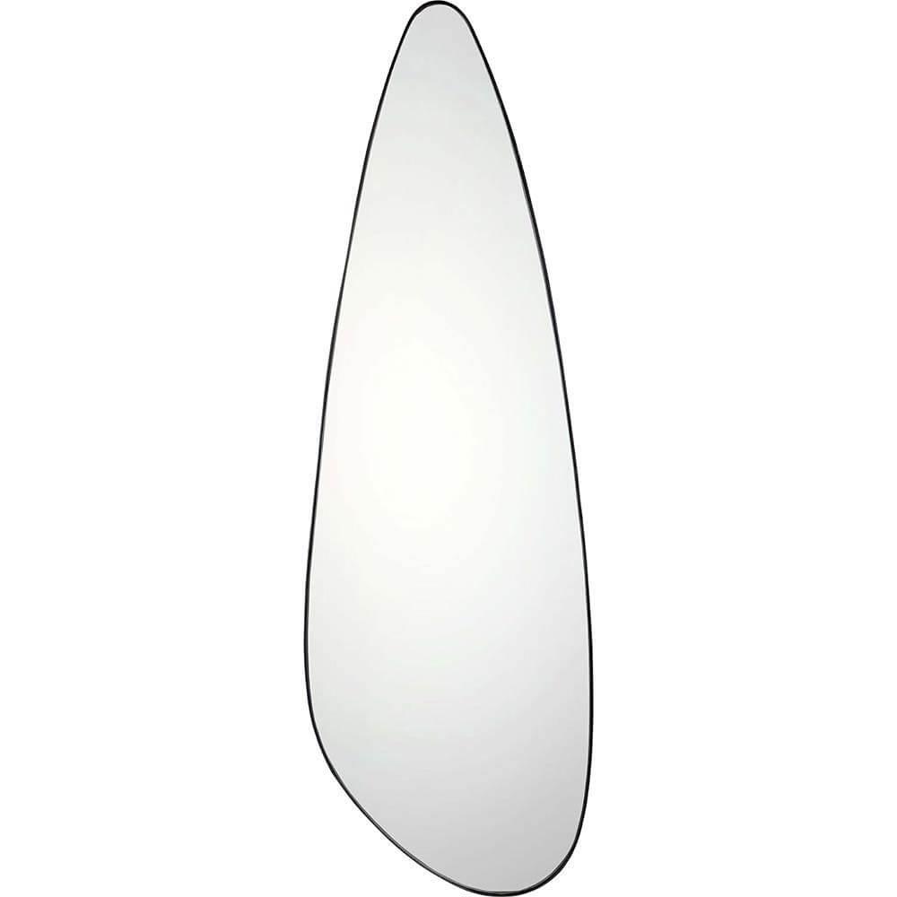 This mirror has a unique, asymmetrical shape and a minimalist iron frame, giving it a modern and light expression. The simple iron frame embraces the mirror's organic lines, making it an ideal choice for interiors that appreciate simple and stylish details. Perfect for adding depth and light to the room, this mirror works equally well in the home, shop, or café.